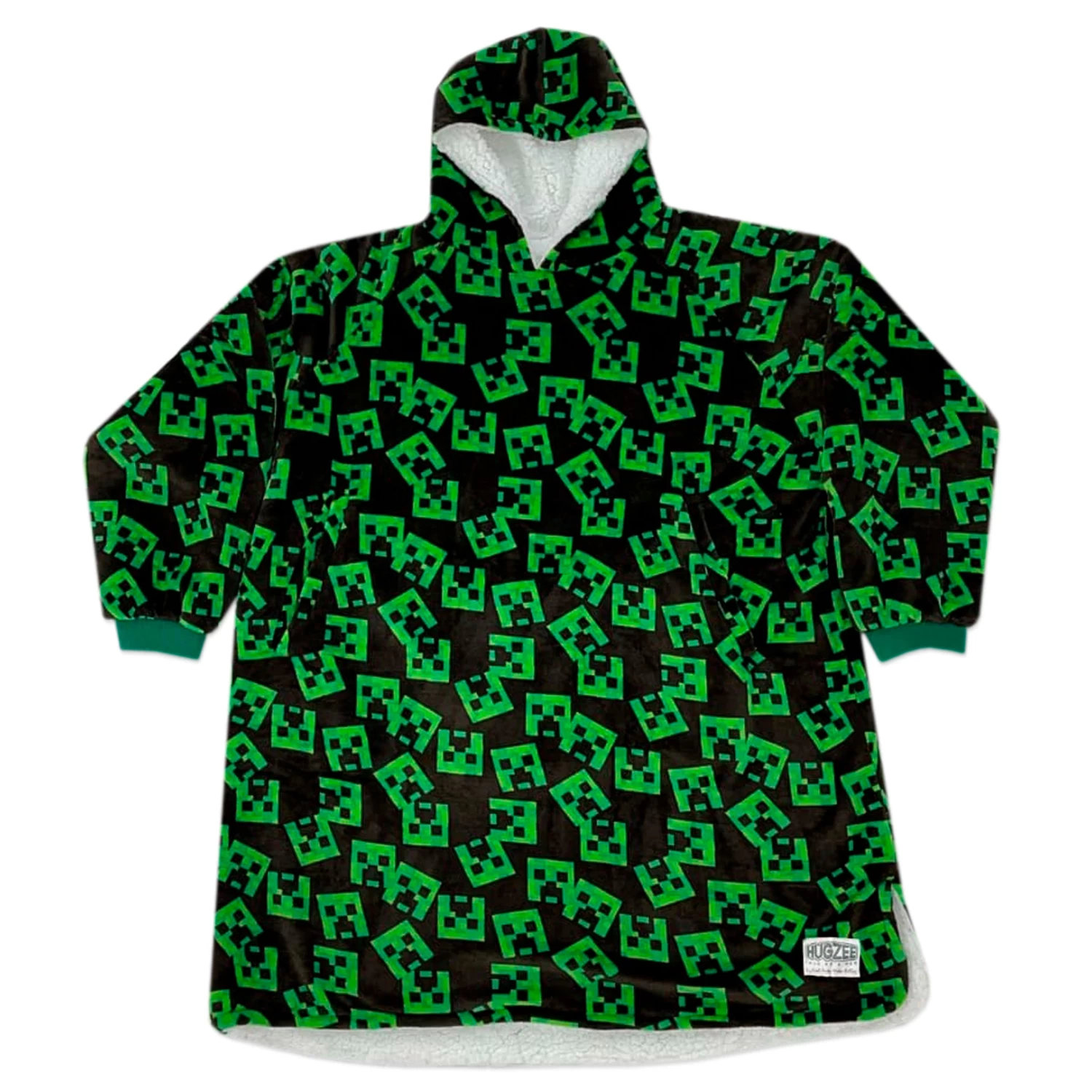 Get ready for an epic comfy gaming session in this fun Minecraft Fleece Hoodie Blanket. With an all over motif of green Creeper heads against a contrasting black background, a fleece lining for extra comfort and a hood to be extra cosy. Complete with a large front pocket to store your pickaxes this is the perfect loungewear for any gamer!