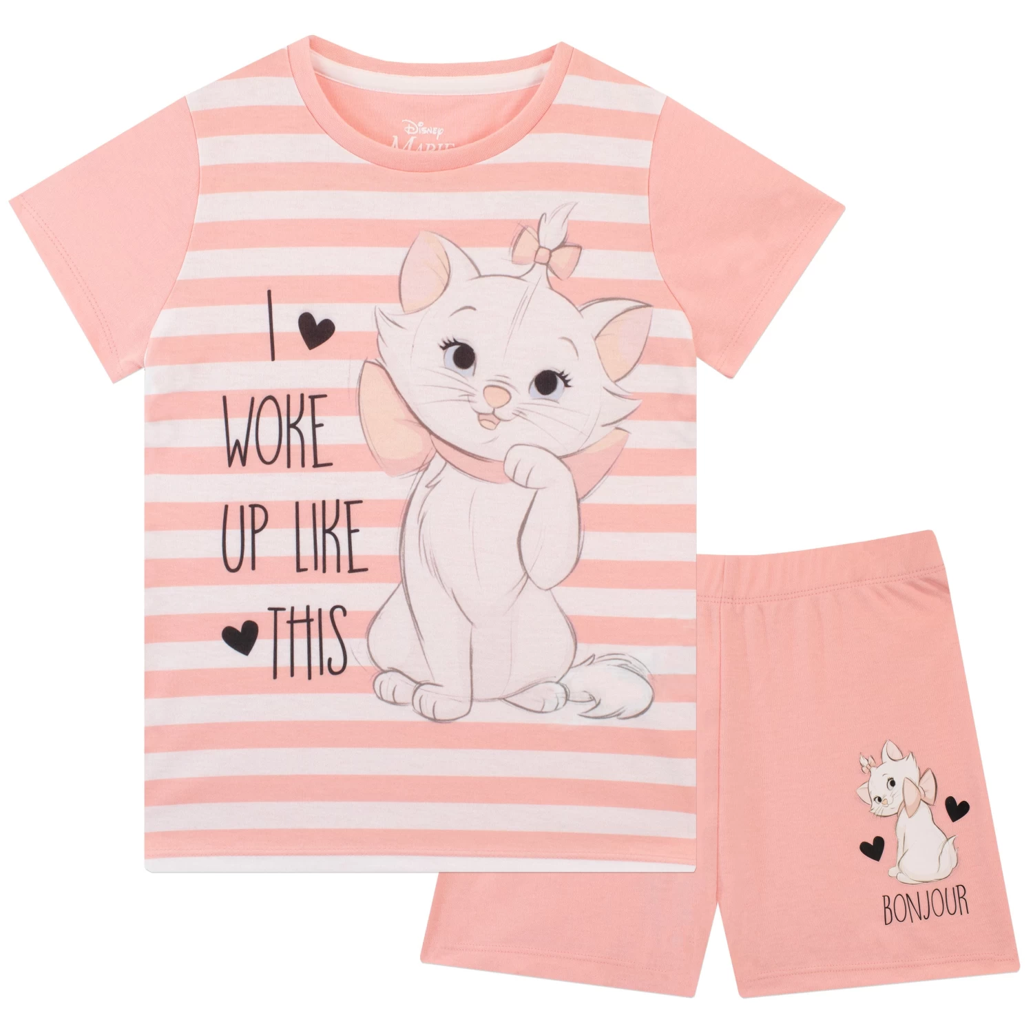 Everybody wants to be a cat, especially with these adorable Marie short pyjamas! This pyjama set features the fabulous Marie and ‘I woke up like this’. A purr-fect pink and white stripe design with matching pink sleeves. Complete with pink shorts featuring a Marie motif and ‘Bonjour!’. Your little one will be sure to make an entrance in these cute jammies!