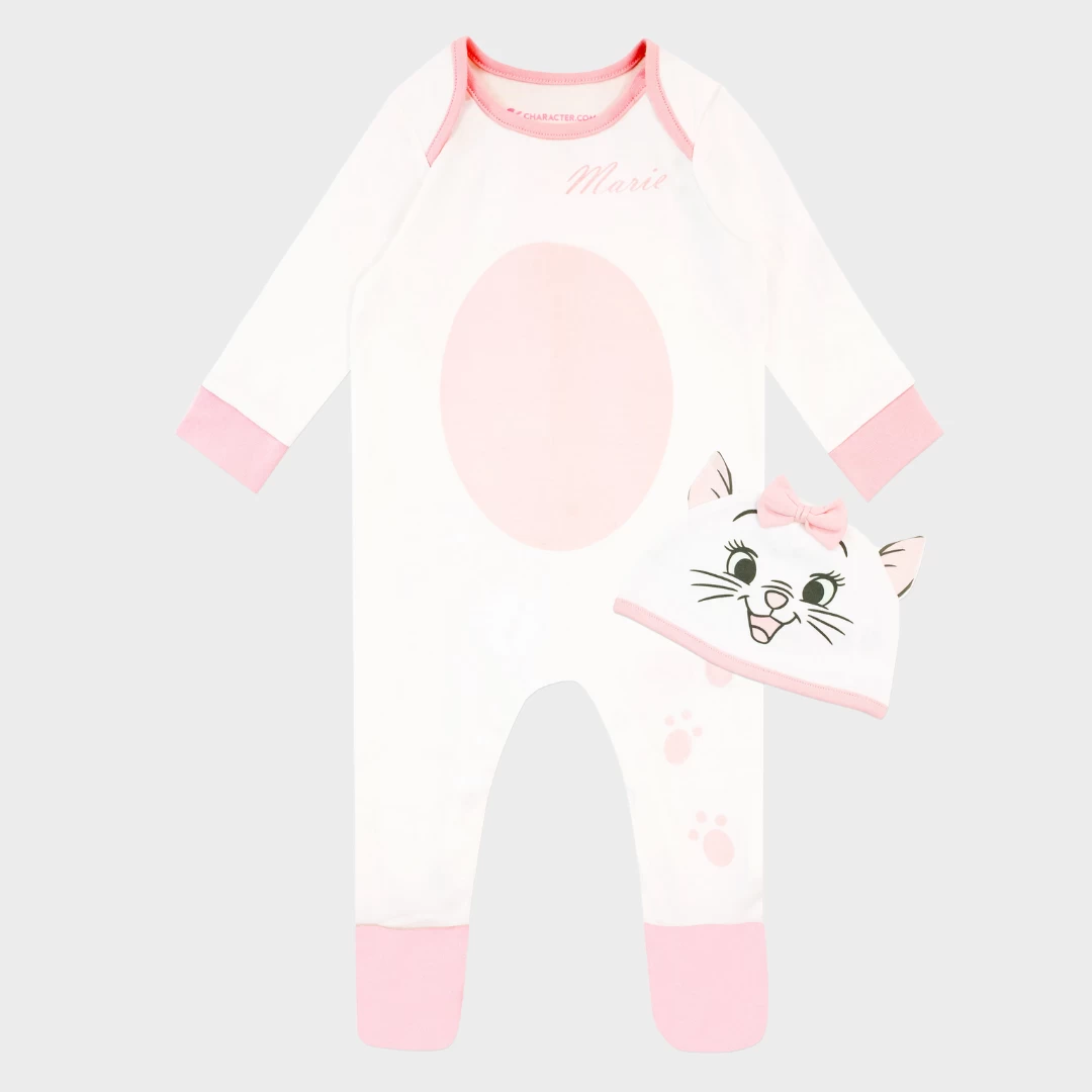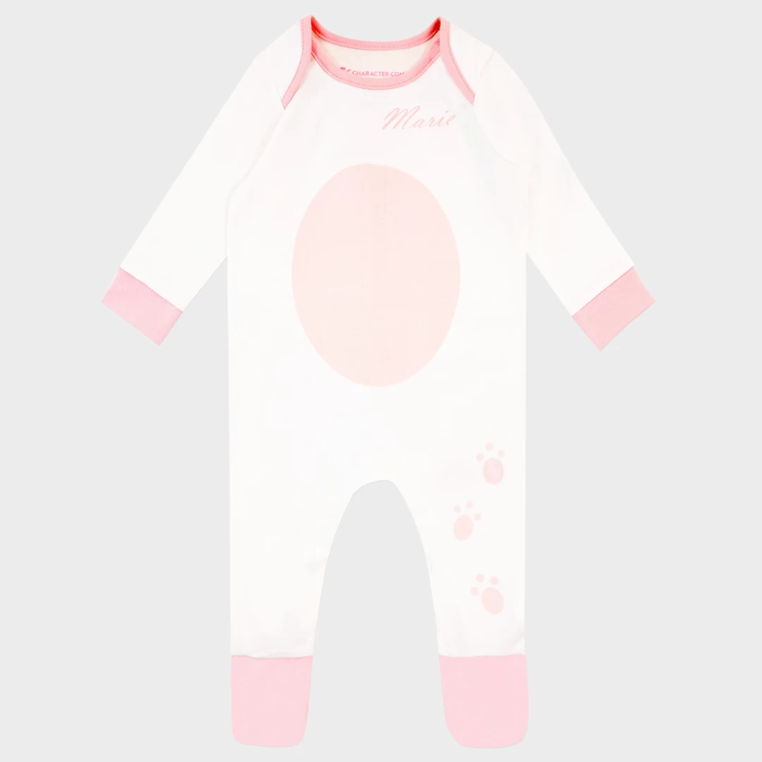Your little kitten will look as adorable as the glamorous Marie when they wear this cute Disney Aristocats sleepsuit and hat set! Made from sustainable cotton, this white onesie has pink feet, tummy and wrist cuffs, with a popper fastening on the shoulder. ‘Marie’ is written on the chest in a pretty swirly font and on the left leg are three paw prints! Comes with an adorable hat that features Marie’s face, with 3D ears and a pretty pink bow. After a good night’s sleep in this purrfect babygrow, your little glamour puss will be ready for another day of adventure!