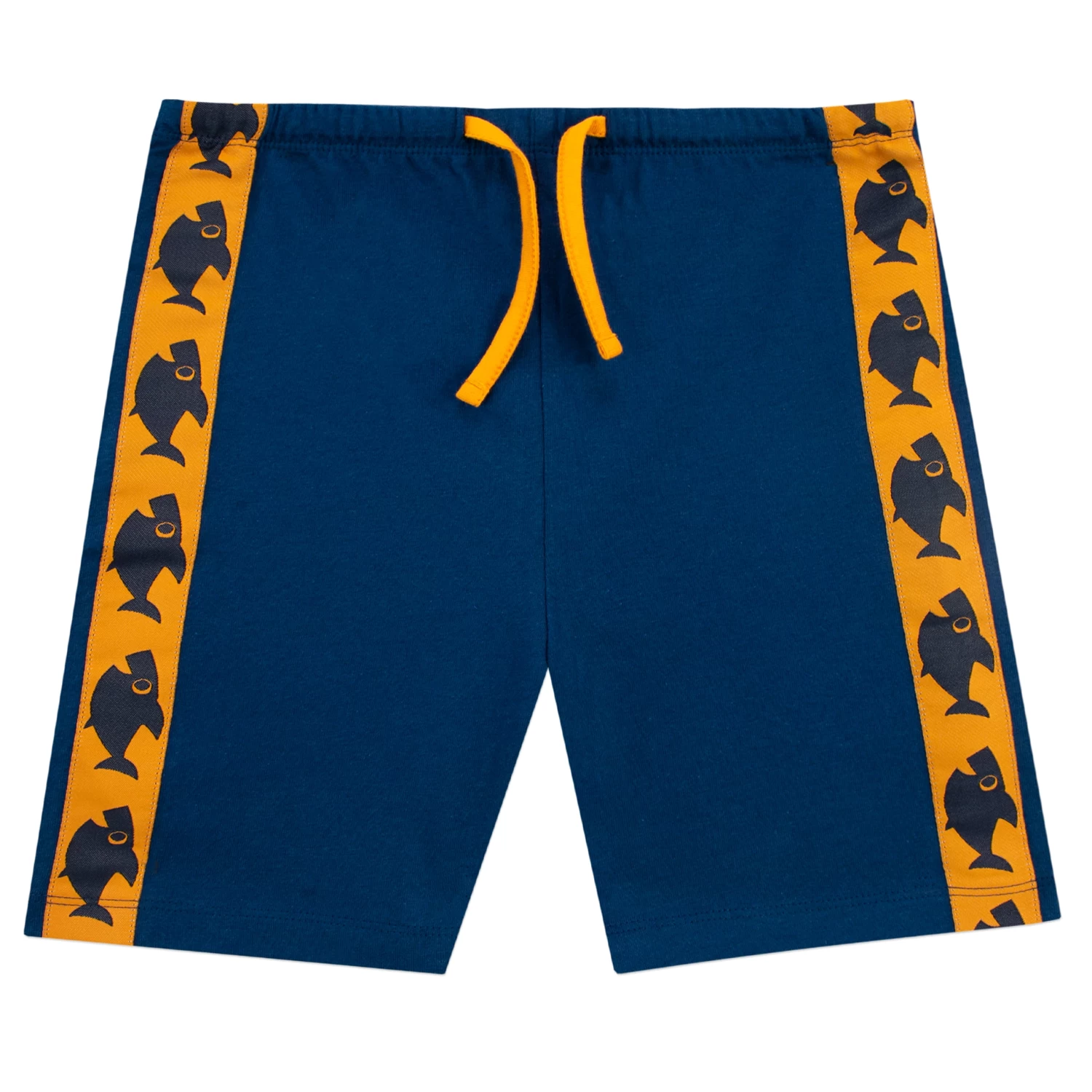 Get your little fishy ready for some fun in the sun in this adorable orange and navy Baby Shark t-shirt and shorts set! Featuring Brooklyn the Baby Shark and Daddy Shark with the slogan ‘Play in the sea!’ around the collar in blue, white and yellow text on the tee. Navy shorts with contrasting orange pull strings around the waistband for extra comfort and orange woven tape down the side of the legs with navy shark detailing. Perfect for any Baby Shark fan! Your shark lover will be ready to go in this cute daywear set!