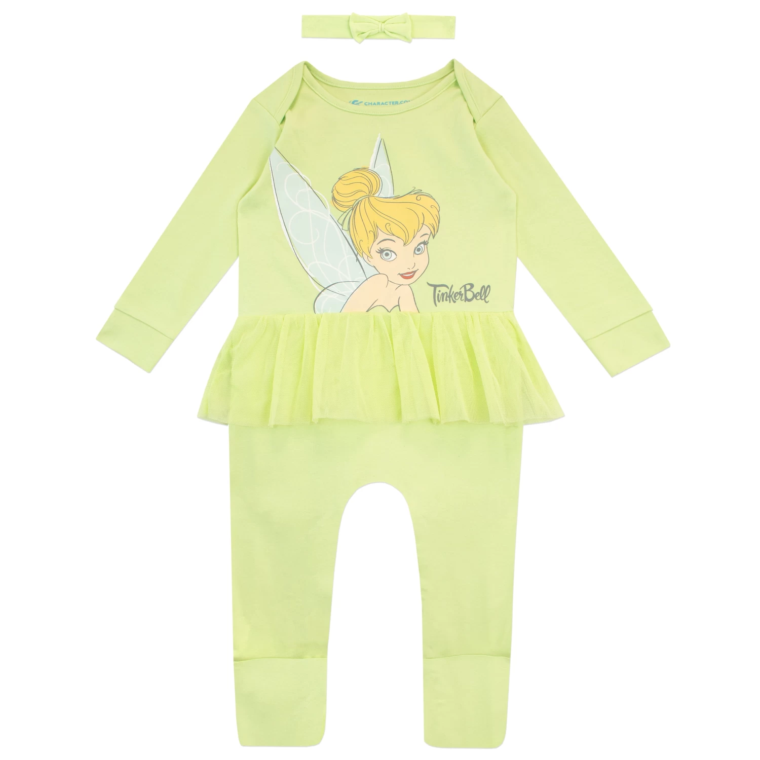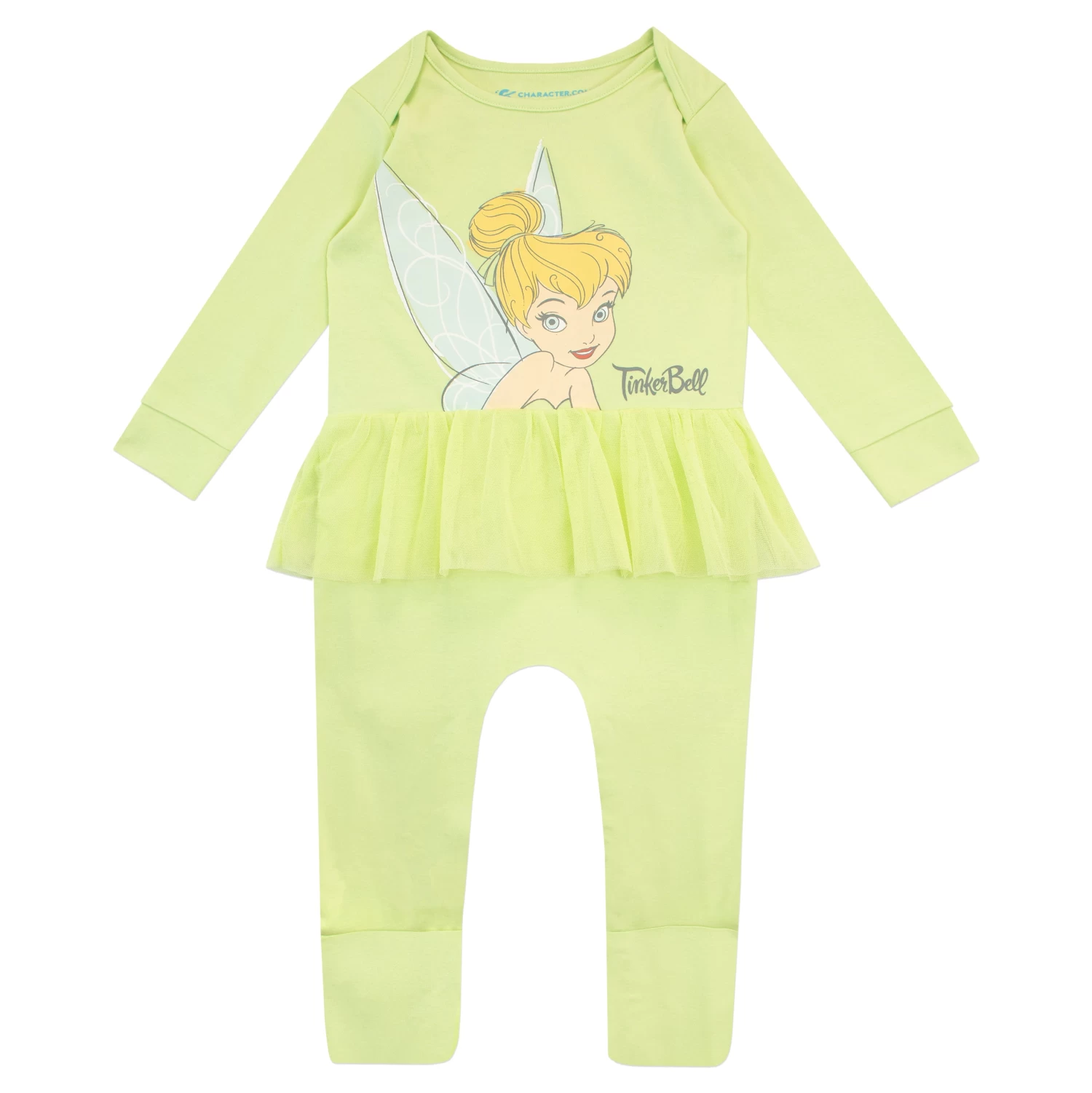 Sprinkle some pixie dust onto your little fairy’s dreams with this magical Tinker Bell sleepsuit! Made of sustainable cotton, this green all-in-one is designed to resemble Tinker Bell’s iconic outfit, complete with a tutu at the waist and a matching headband with a bow. The onesie showcases a cute print of Tink with ‘Tinker Bell’ written beside her in glittery lettering. In this adorable Peter Pan babygrow, your little one will be ready to fly off to Neverland for a night of magical Disney dreams!