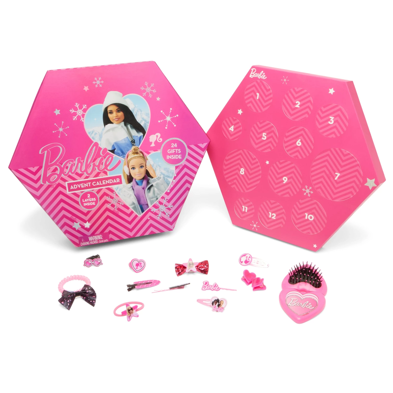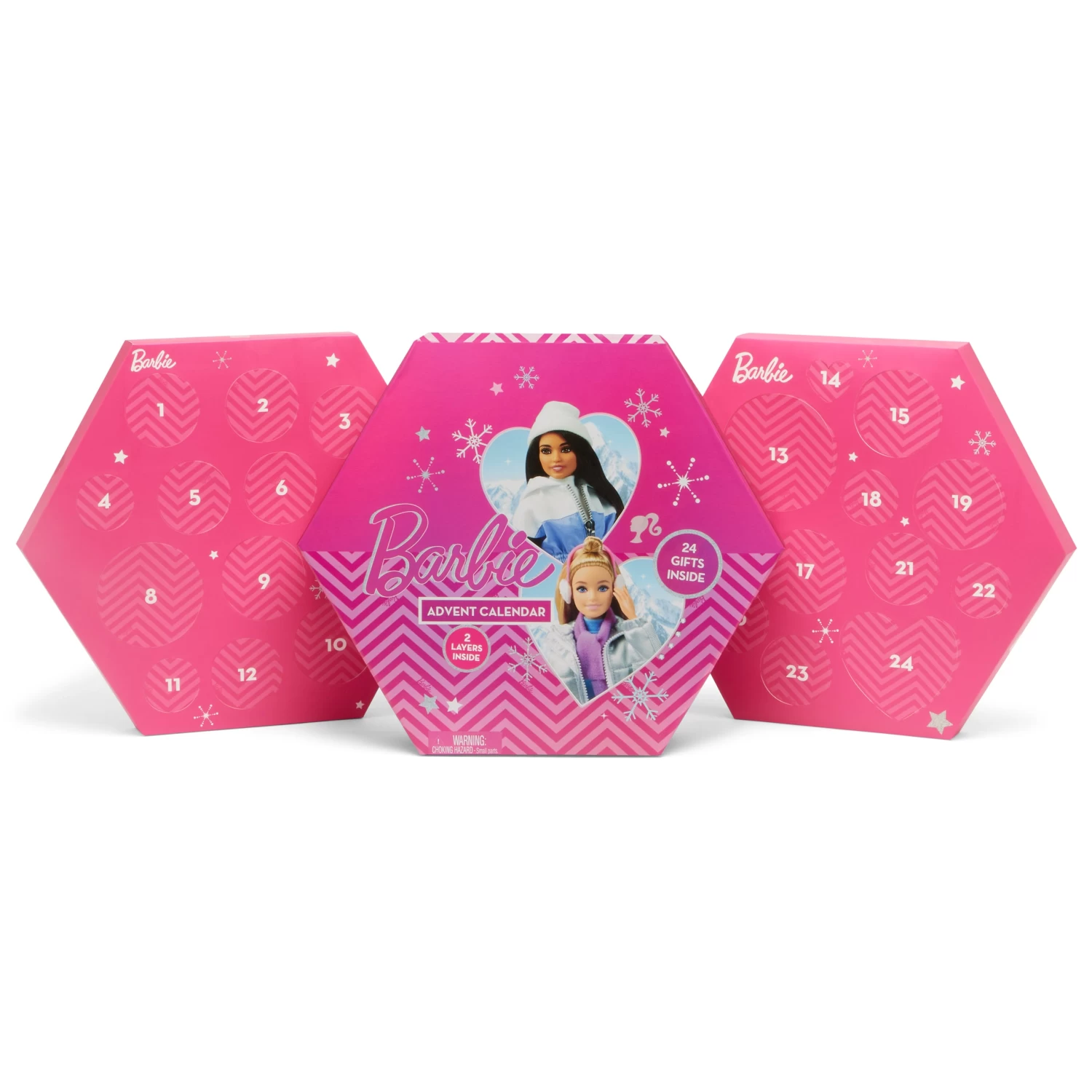 - Barbie Christmas Beauty: Unwrap 24 days of fabulous finds in a hexagonal box that’s a pink paradise for every Barbie aficionado!
