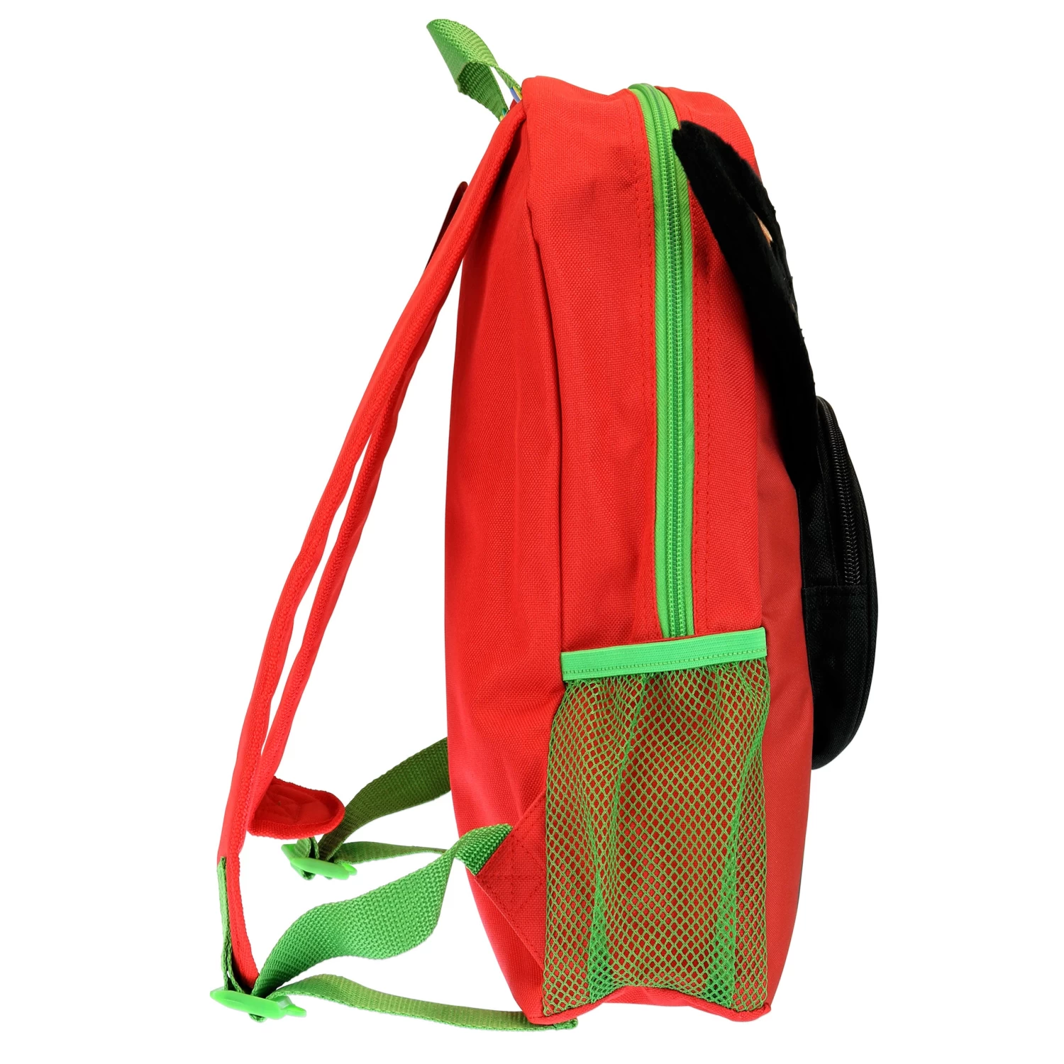 This adorable red and green Bing bag features the Cbeebies bunny Bing as a 3D front pocket with his ears in fun faux fur! Complete with the Bing logo, a large zipped main compartment and mesh side pockets, this is the perfect school bag for your bunny’s adventures!
