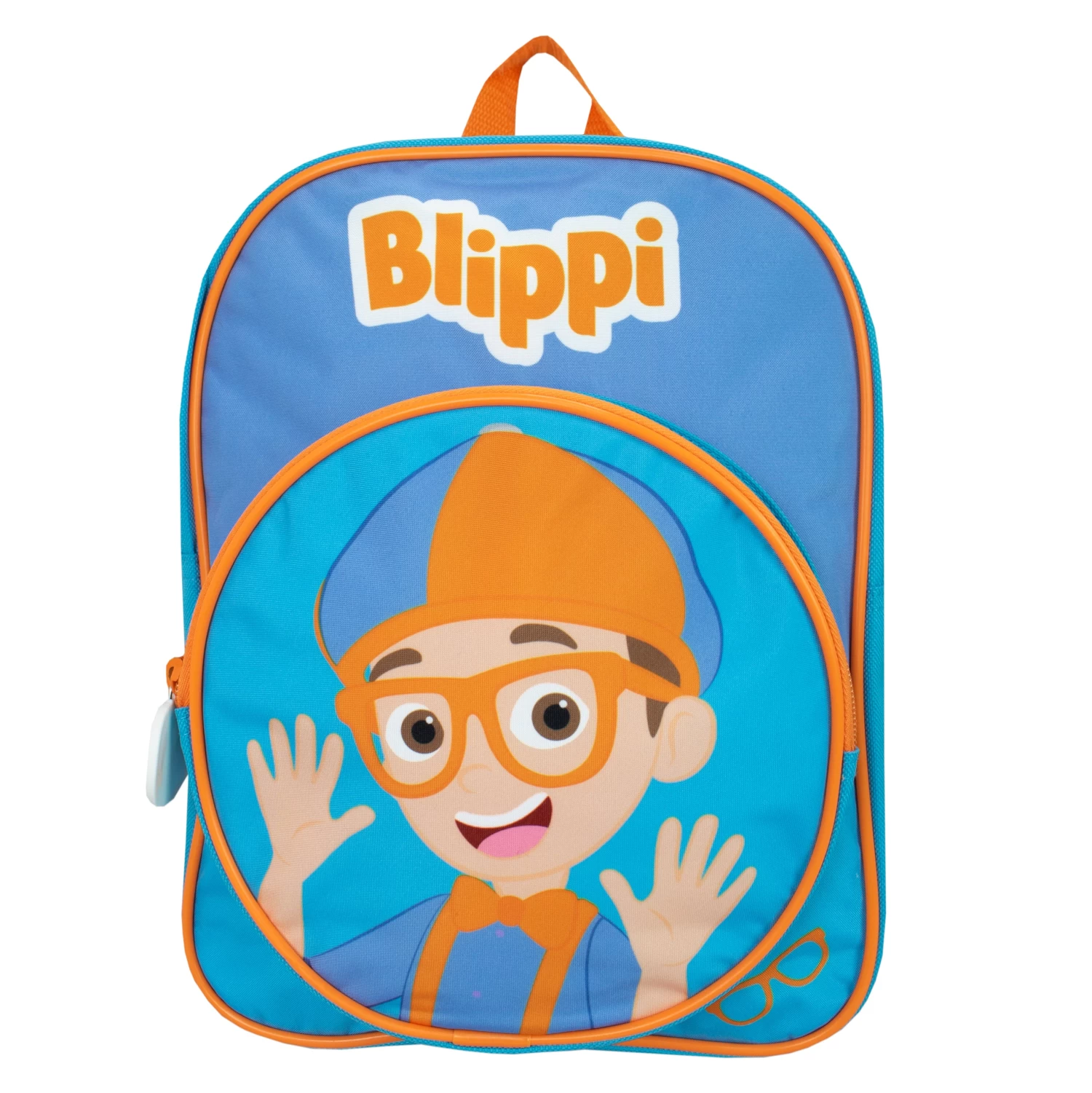 Get ready to silly dance along with Blippi in this cute kids Blippi backpack! The front circle pocket showcases a print of Blippi with a fun zip pull featuring Blippi’s face. This blue and orange bag features the classic Blippi logo in orange at the top and features orange piping aroind the edges. The perfect little bag for any Blippi fan! Approximate Dimensions: H:30cm x W:24cm