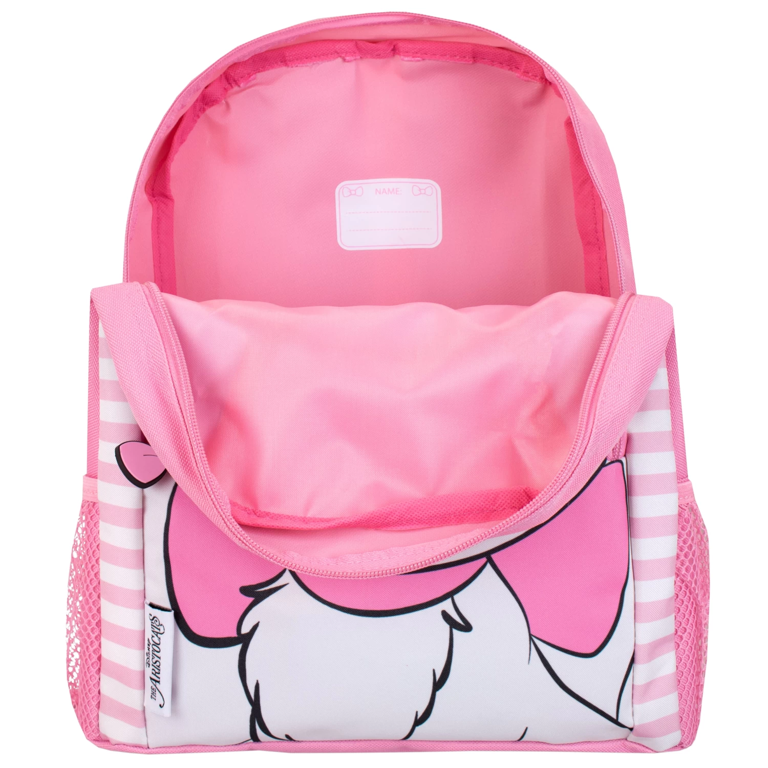 Purr-fect for your little lady’s adventures with Toulouse and Berlioz, this adorable Disney bag features the sweetest design of their favourite Aristocat The Duchesses’ Marie with her ears and pink bow in 3D. Complete with her name in silver writing and pink striped detailing, this Disney rucksack is a meow-velous choice for your kitten with some Cat-itude! A pretty yet practical school bag, this daypack includes a zipped main and front compartment, with mesh side pockets, a hanging loop and adjustable shoulder straps. Complete with a Milk carton zip pull this rucksack will be a hit with anyone who wants to be a cat! Meow!