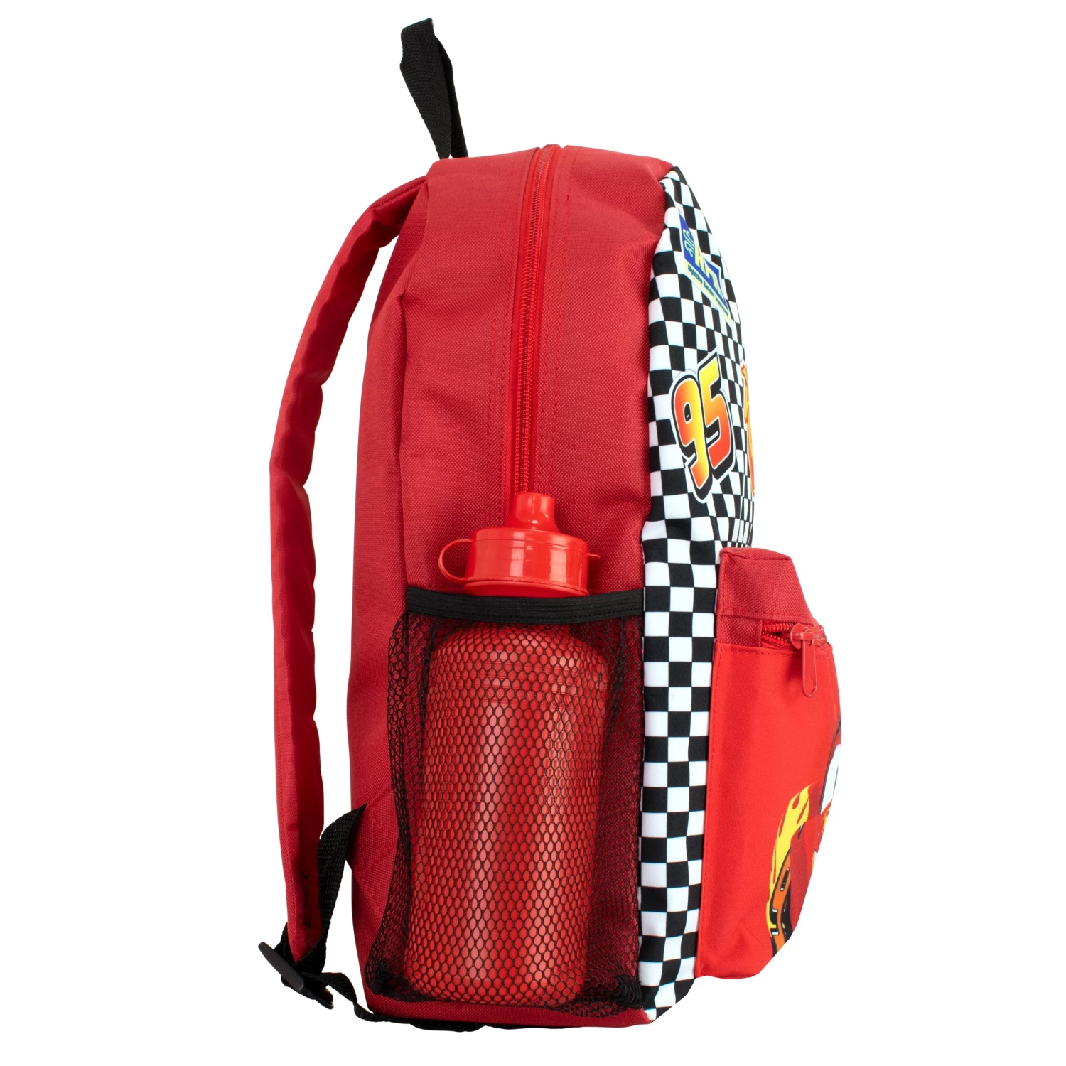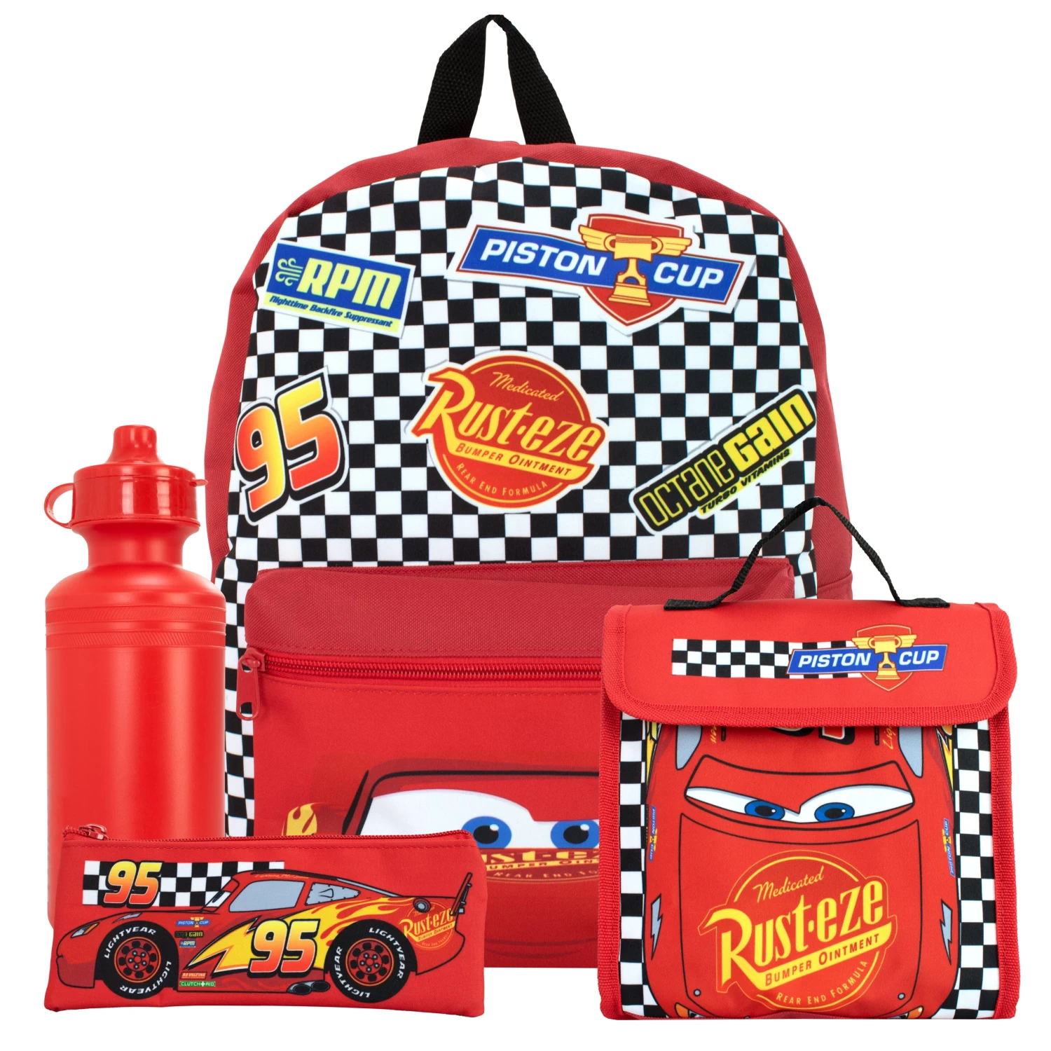 - Race-ready with Disney’s Lightening McQueen: Rev up your school uniform with Lightning McQueen and this 4 piece school bag set. Includes rucksack, pencil case, and water bottle for complete school or travel essentials.