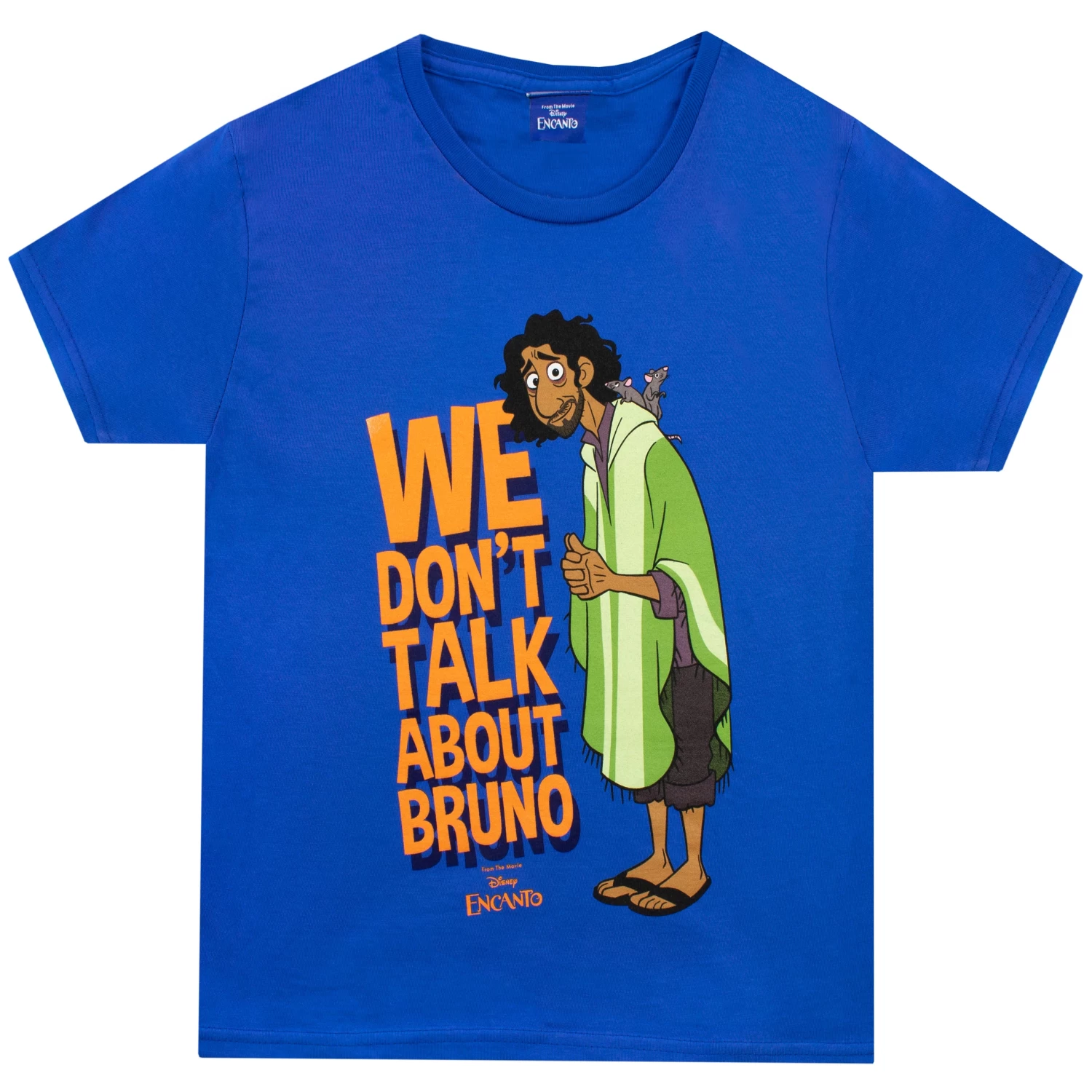 Boys Encanto T-Shirt. Let everyone know not to talk about Bruno with this awesome Encanto tee! This amazing top features Bruno Madrigal surrounded by the wording ‘We Don’t Talk About Bruno’ in bold orange. Perfect gift for any Encanto fans and perfect for singing your favourite songs!