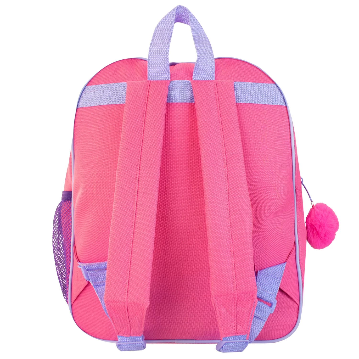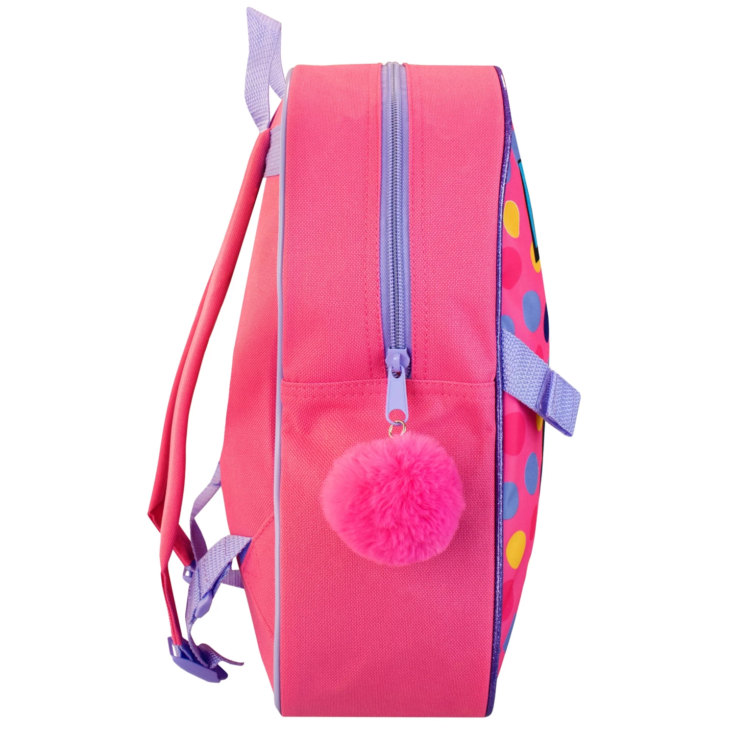 Disney fans will love to explore the dotty world of Minnie Mouse with this cute Minnie rucksack and detachable lunchbox! Both bags in this set showcase Minnie against a background of multicoloured polka dots, while the main bag also showcases ‘Minnie’ printed in bold colourful letters across the top and is framed by purple sparkly piping. The pink fluffy pompom zip pull, mesh side pocket and printed interior name label make this an ideal schoolbag for your little mouse! They’ll love to go on exciting Disney adventures with Minnie and friends with this adorable rucksack set! Approximate Dimensions: Backpack H: 35 x W: 28 x D: 10 cm Lunch Bag H: 18 x W: 25 x D: 9 cm