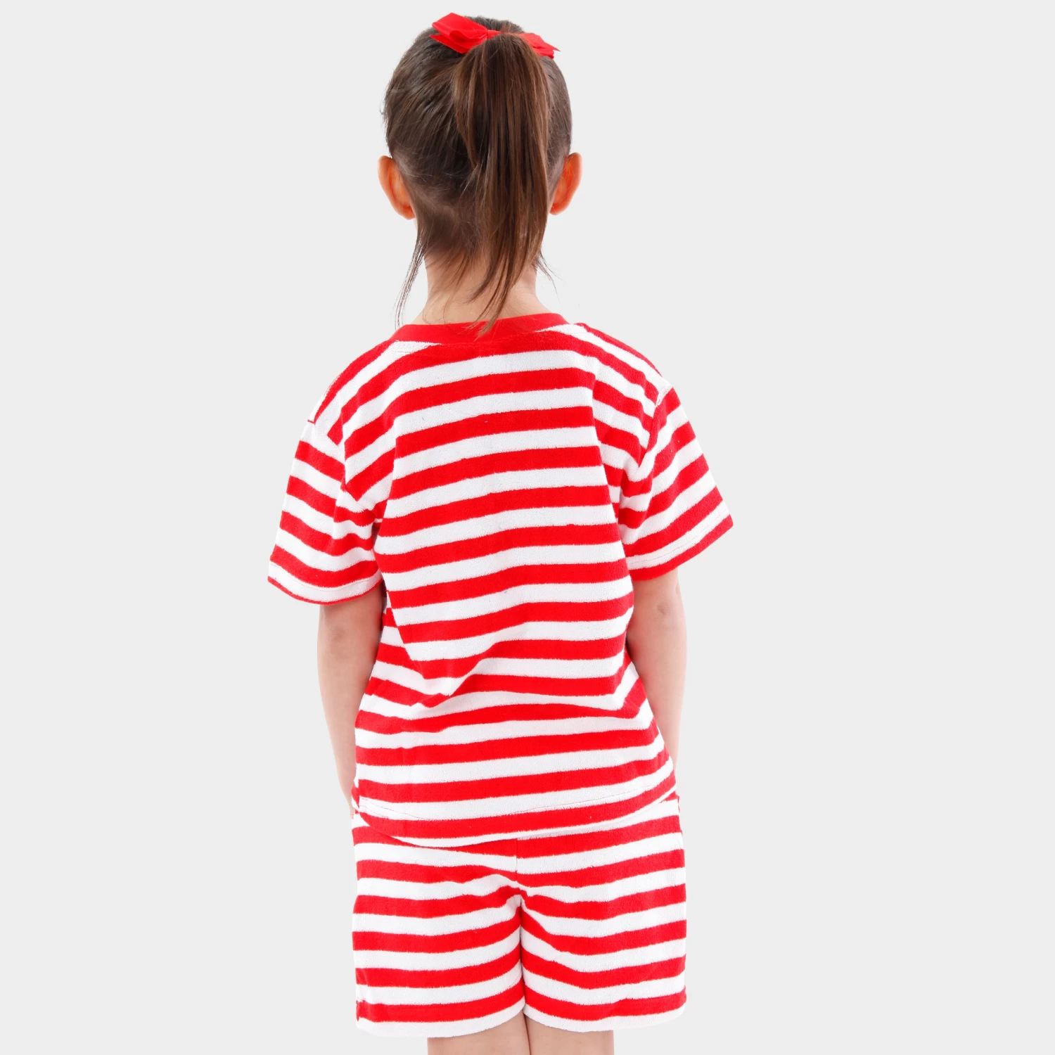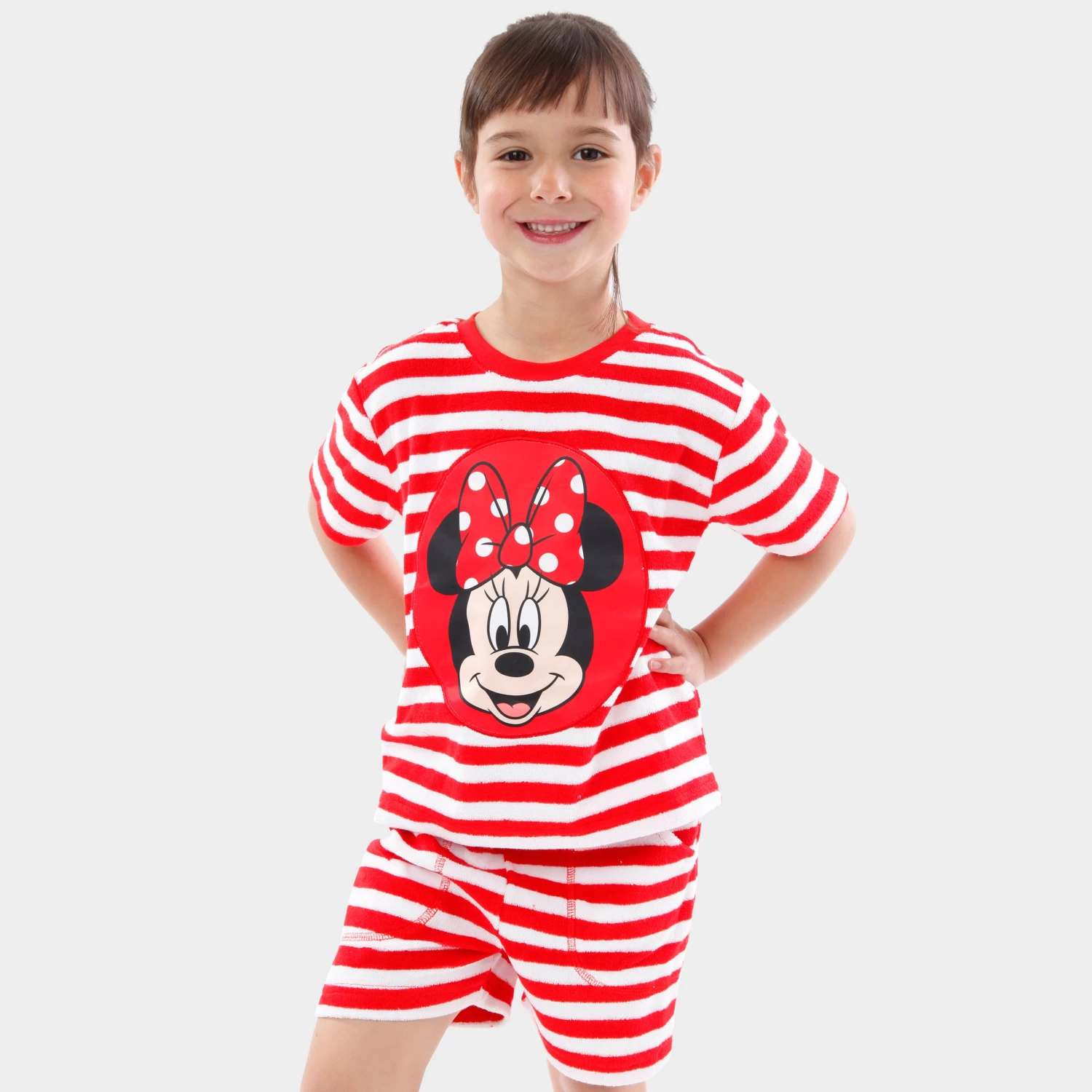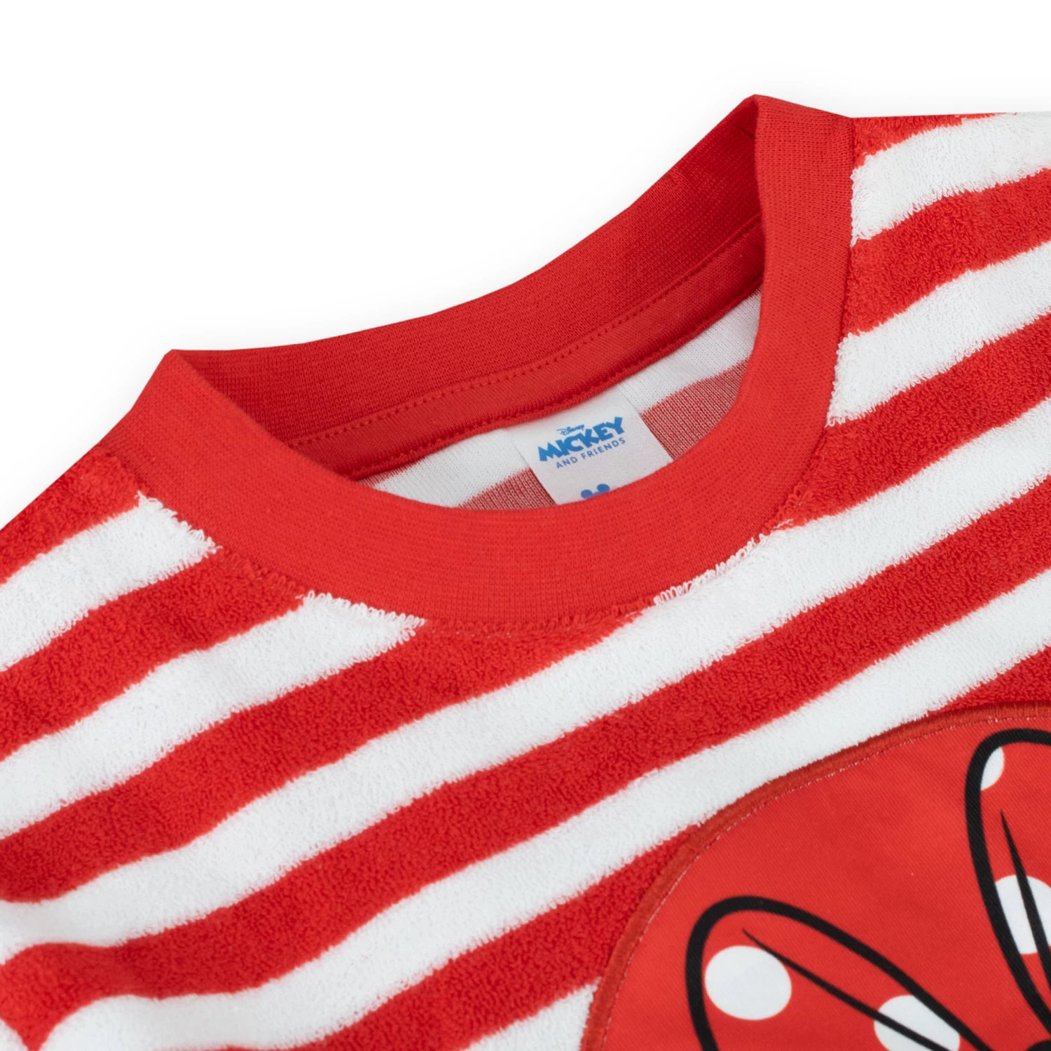 Get your little Disney fan ready for a magical day out to the pool or beach with this ear-resistable Minnie Mouse set! Made of soft towel material, this outfit set includes a red and white stripy t-shirt that features an adorable print of Minnie’s face, and matching towel shorts that have an elasticated waistband and two handy pockets. Wear with their favourite Disney swimsuit for a magical swimming adventure!
