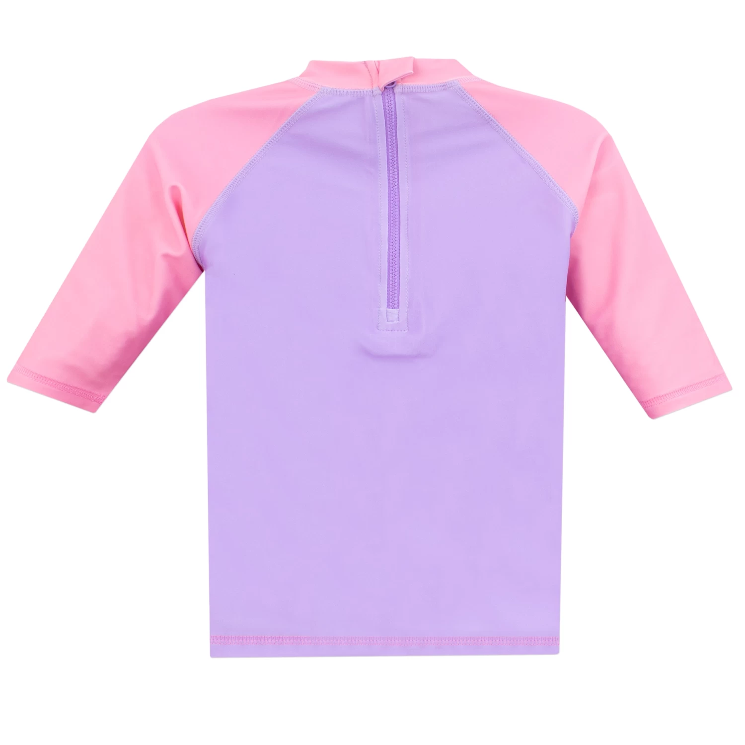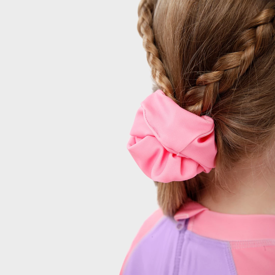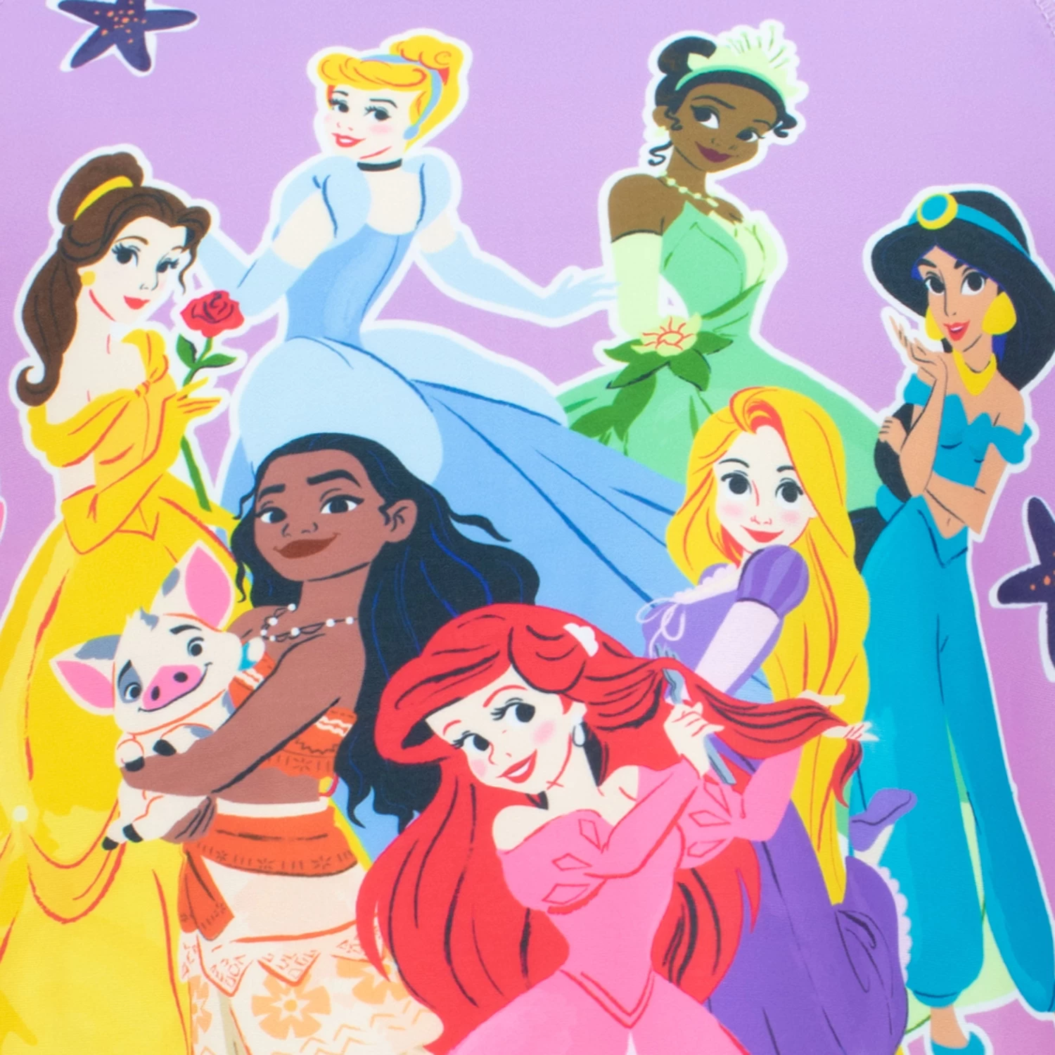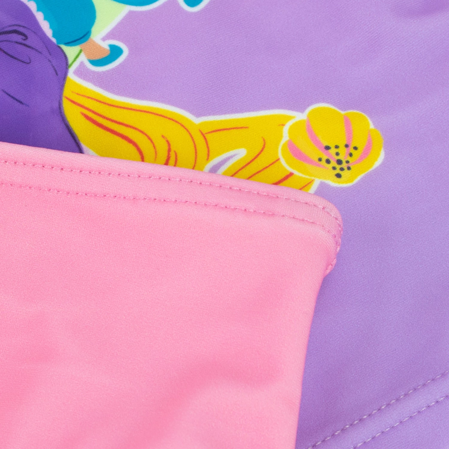 Make a splash in this cute Disney Princess Pack of 4 Swimset. This swimsuit features a pink rash guard set including two swim tops, one with short sleeves and the other with ruched straps with the same main image of the Disney princesses like, Rapunzel, Ariel, Belle, Cinderella, Tiana and Jasmine. Paired with matching pink swim bottoms and a cute pink scrunchie perfect for exploring a whole new world. This swimming costume is perfect for the beach or pool for any princess!