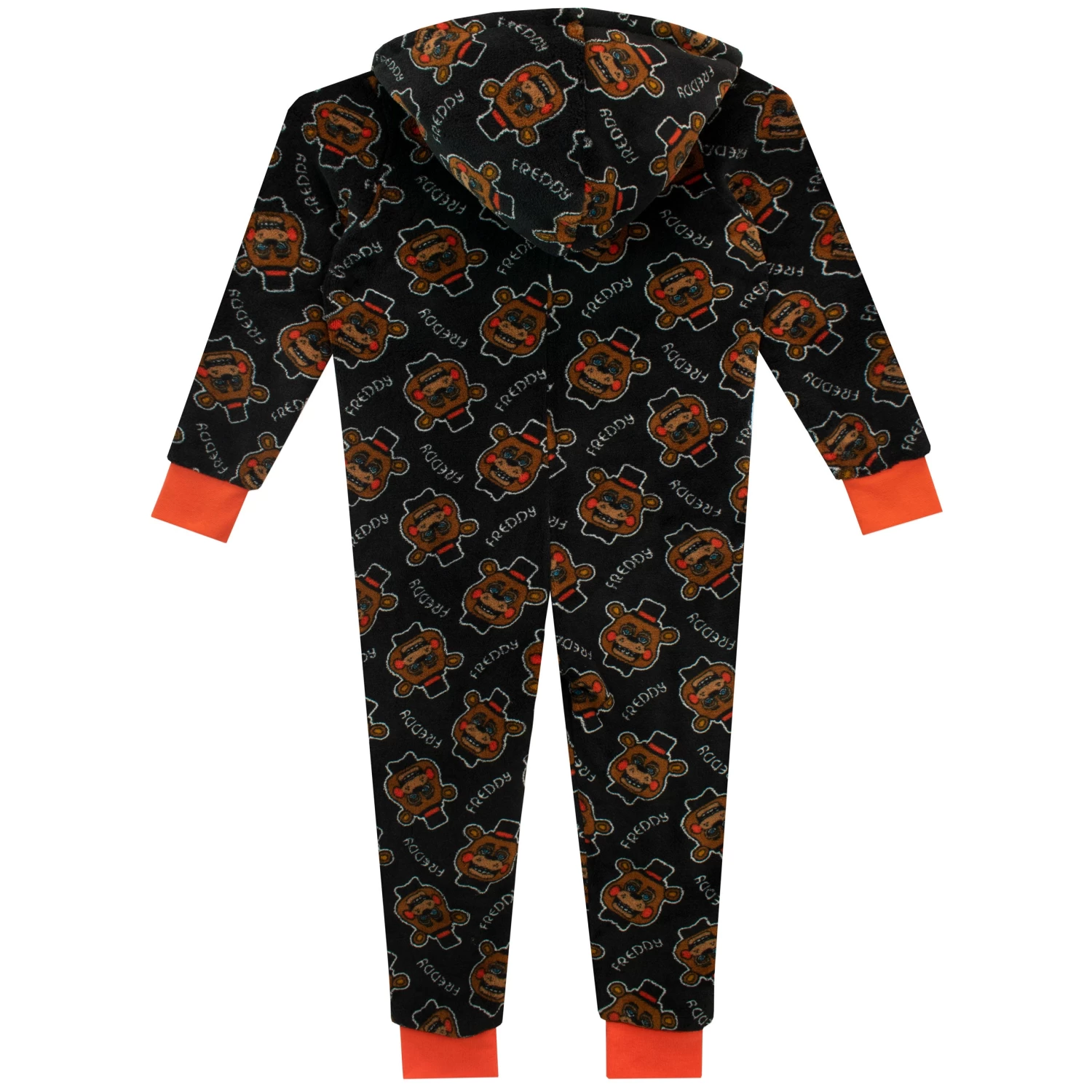 Does your little gamer think he has what it takes to spend five nights at Freddy’s? Then he’d better go equipped with this Five Nights at Freddy’s onesie to boost his courage! A black onesie with red cuffs featuring a pattern of Freddy Fazbear’s face and ‘Freddy’ in white font, with a hood for extra comfort. There’s no better way to prepare for a spooky gaming session than with this comfy FNAF onesie!