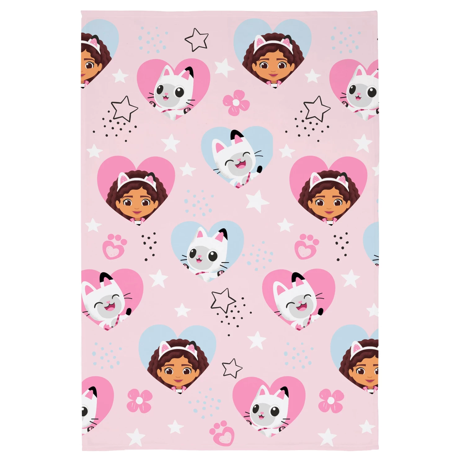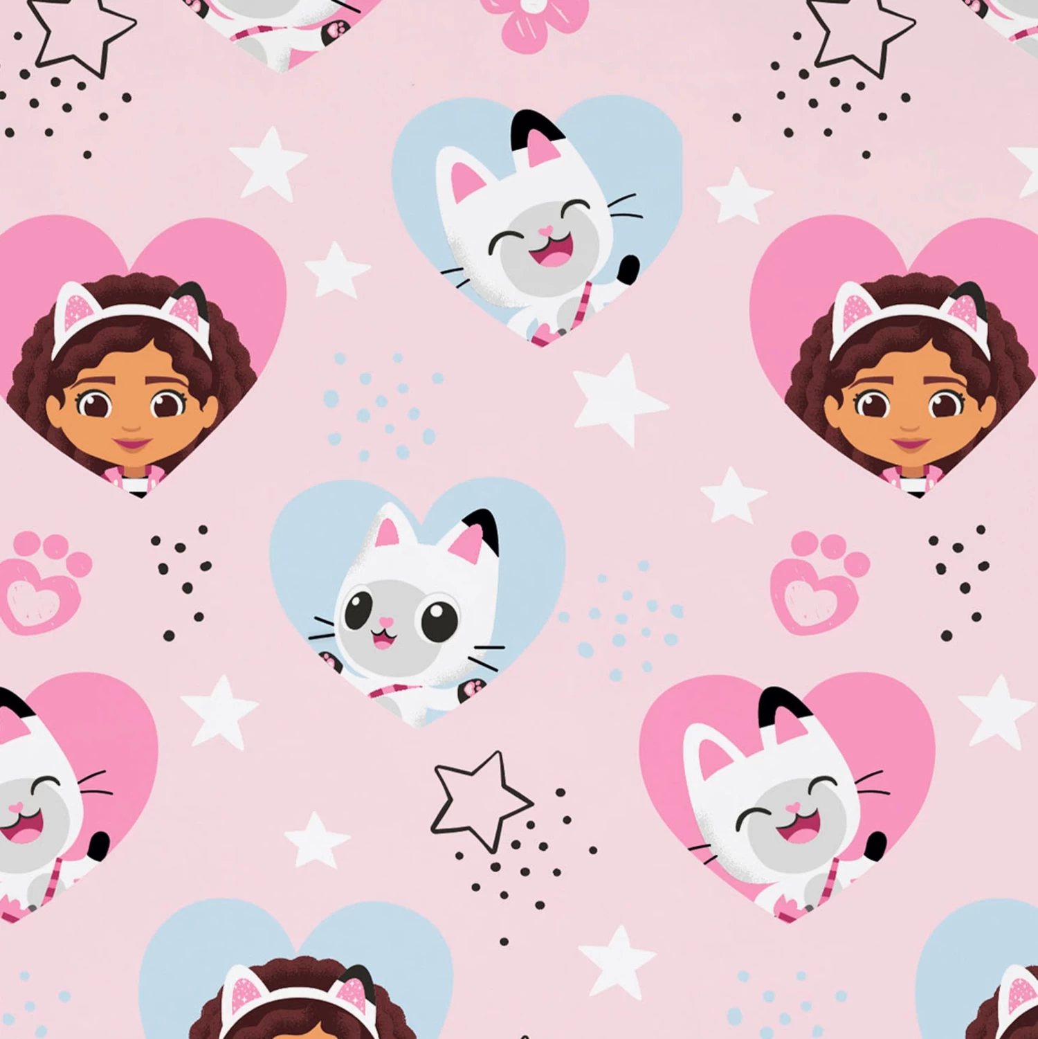 - Delightful Design for Little Fans: Adorned with paw prints, pink hearts, and featuring Gabby and Pandy Paws within the hearts, it’s Gabby’s Dollhouse love in every thread!
