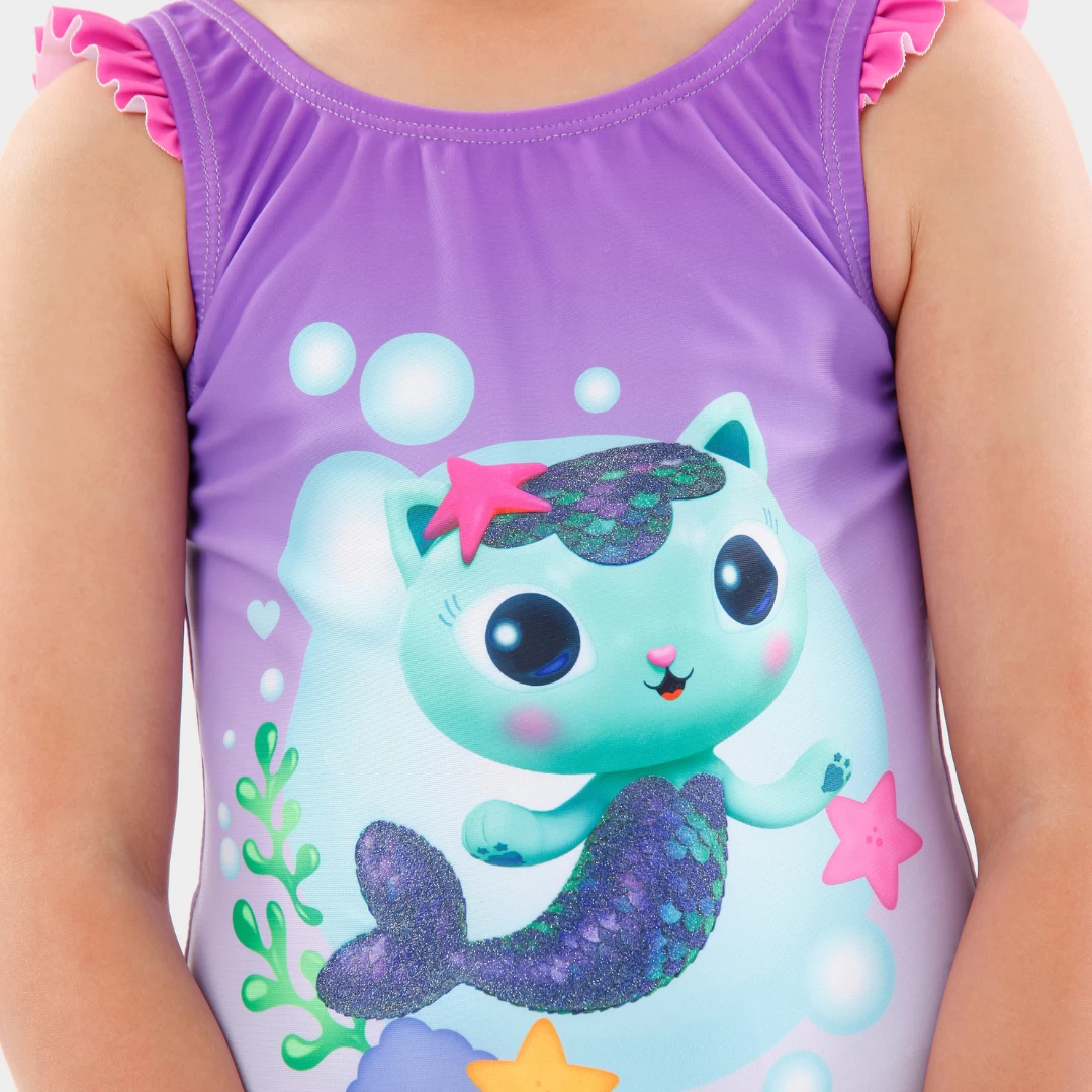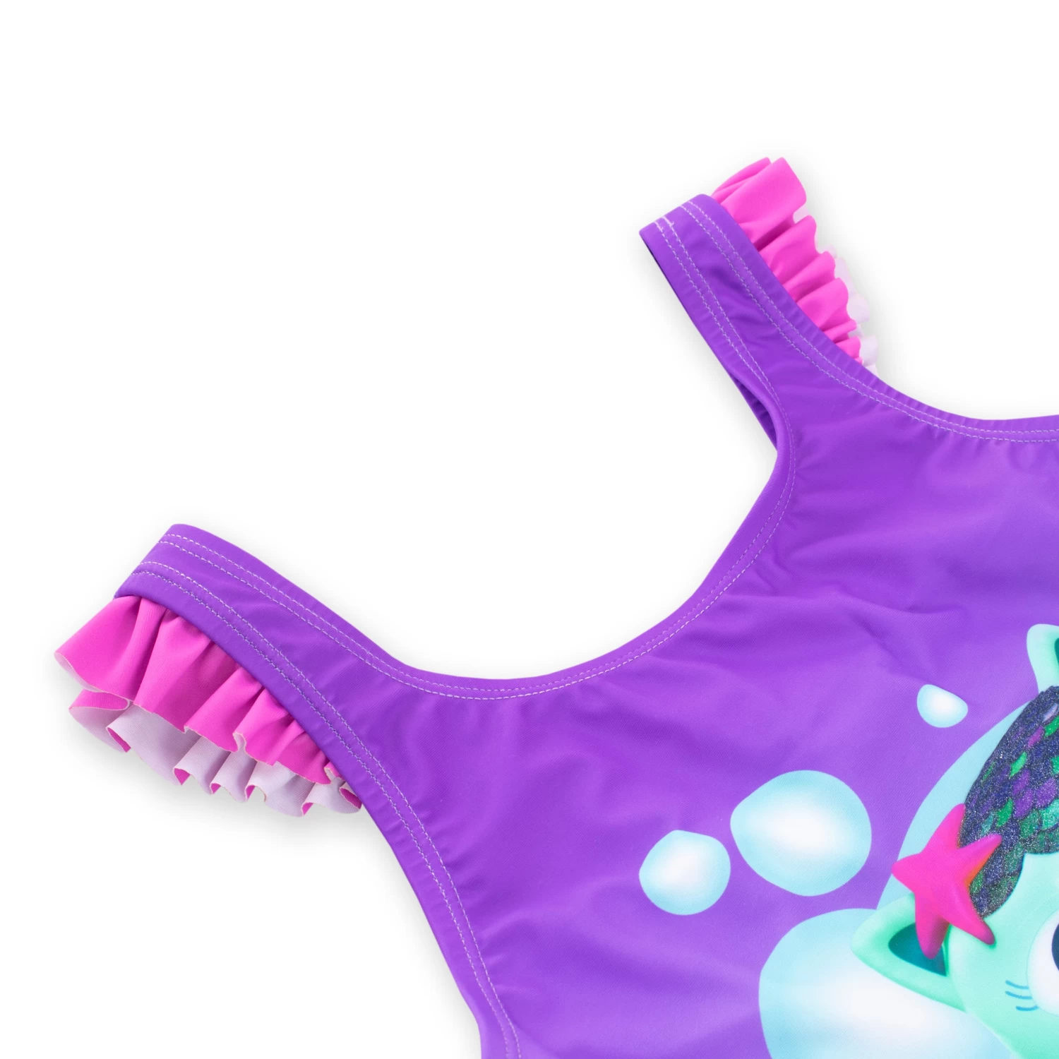 - Gabby’s Dollhouse Swimsuit for Girls: One-Piece Swimming Costume with Mercat, Glitter Detailing, and Playful Frills – Shop Now for Endless Fun in the Water!
