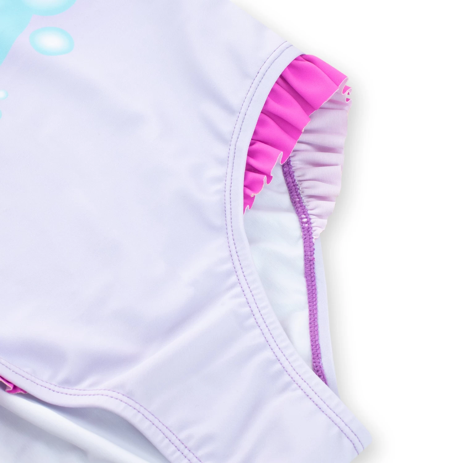 Dive into a sea of fun with Gabby’s Dollhouse Swimsuit for Girls! This fin-tastic one-piece swimming costume features Mercat, the purr-fectly adorable character, with glitter detailing that will make waves. With frills on the straps and waistline, your little one will be ready to make a splash in style. Get ready for a meow-nificent time at the pool or beach with this Gabbys swimsuit that’s sure to create purr-ecious memories!