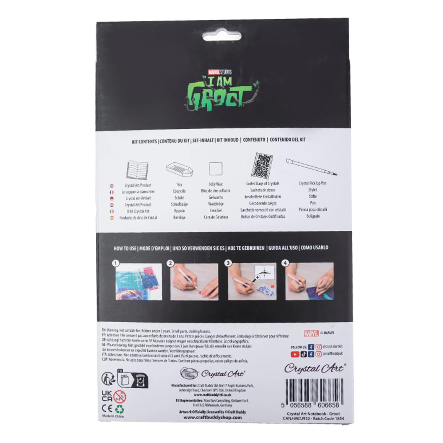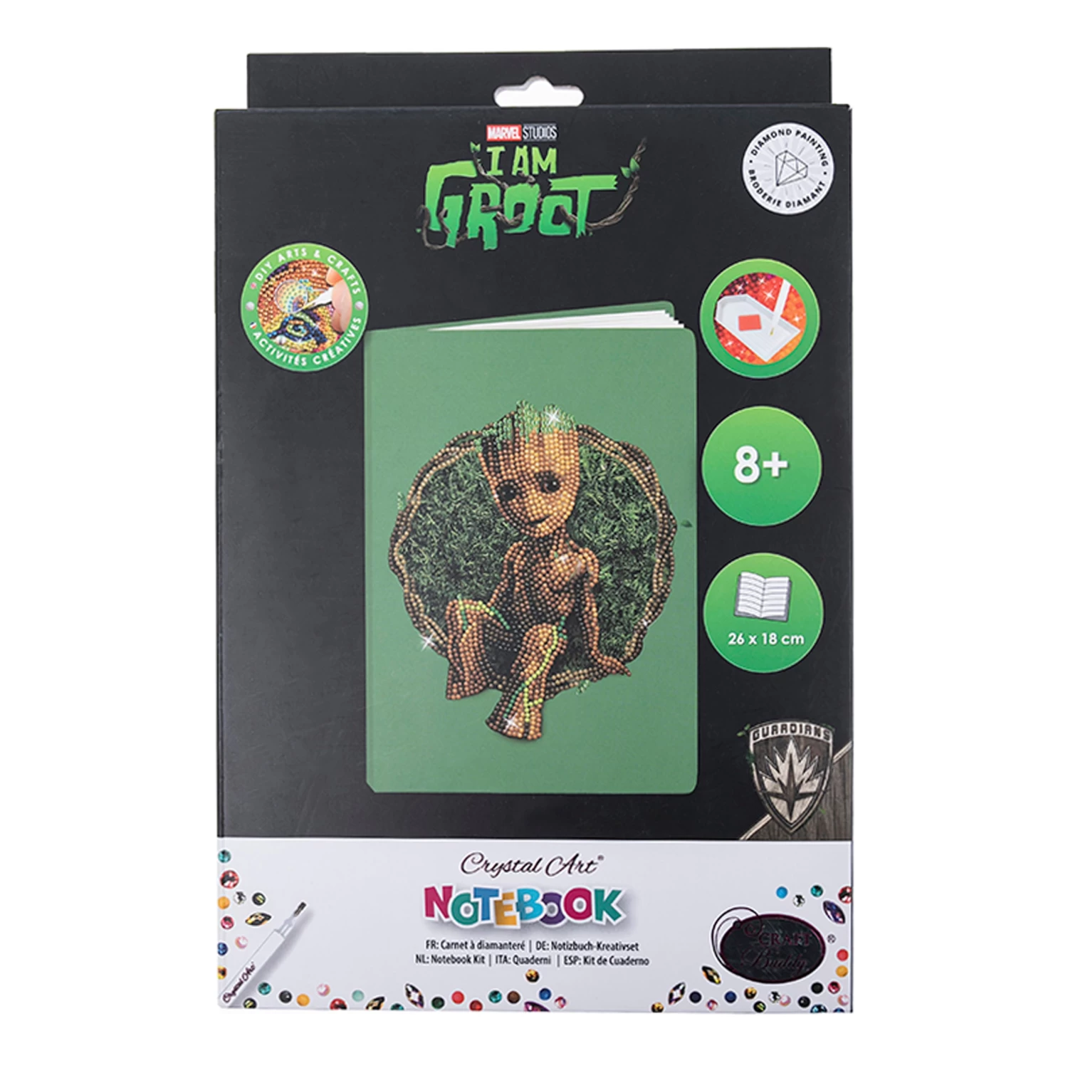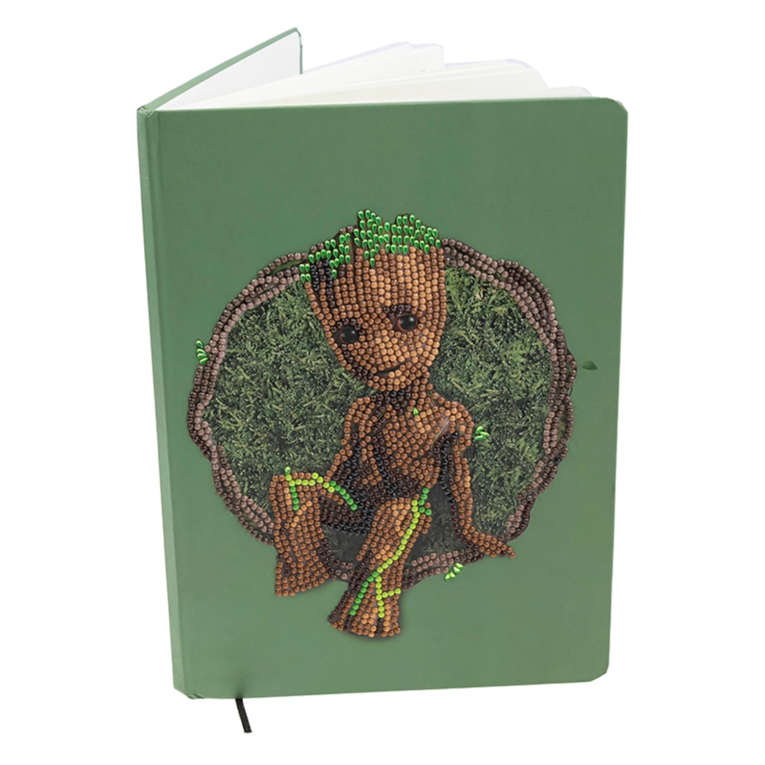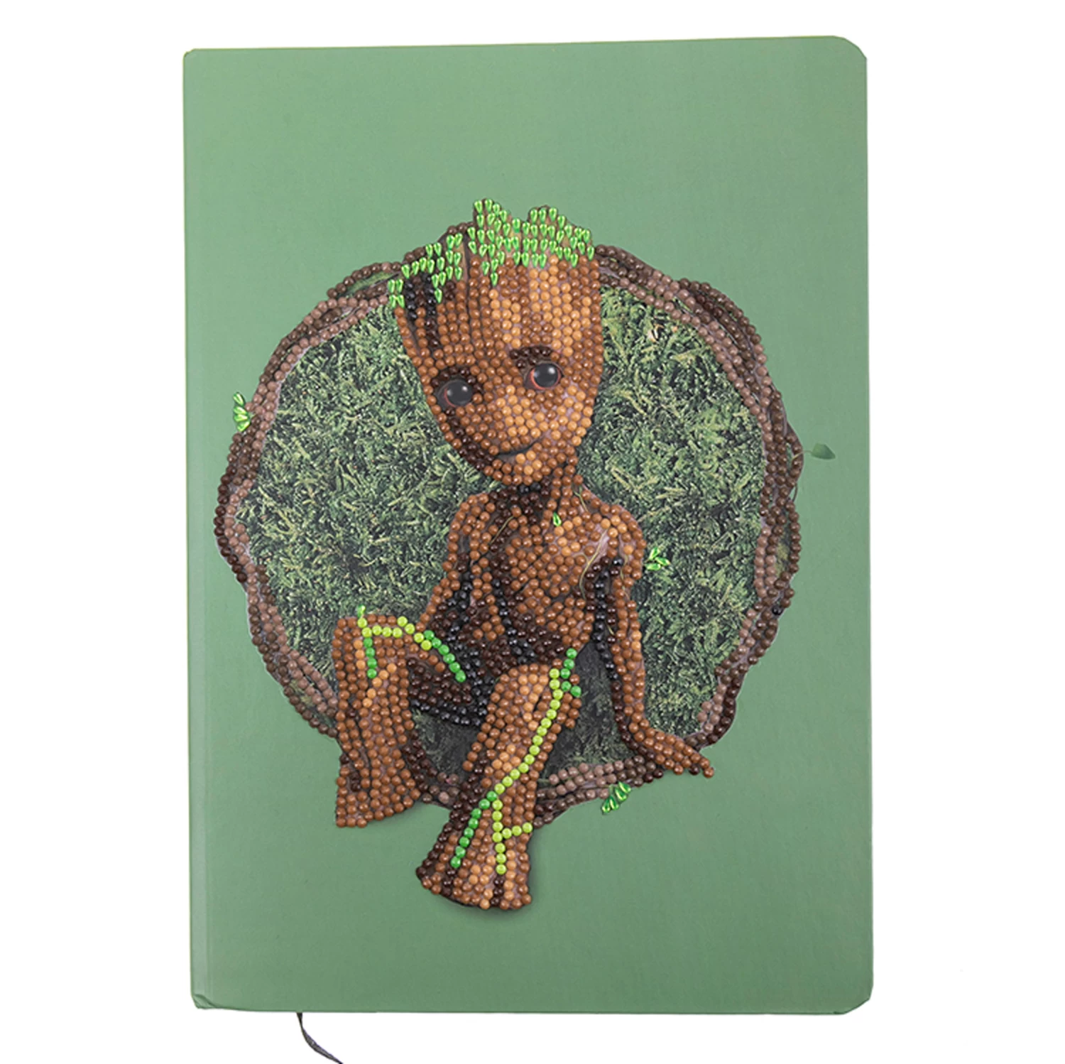 - Bring Groot to Life: Engage with an interactive, DIY crystal buddy art of lovable Groot on a lush, forest-green notebook cover!