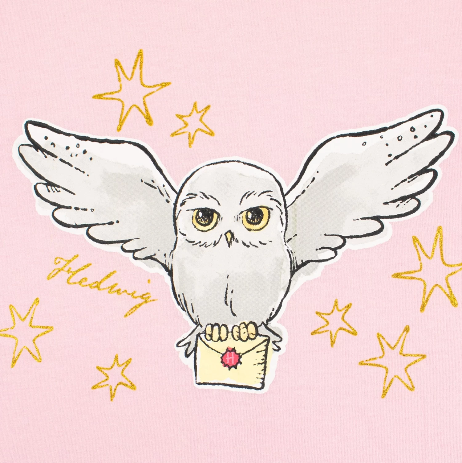 Your little witch or wizard will ready to fly off to Hogwarts with Hedwig in these amazing Harry Potter tees! The first in this 2 pack of short sleeve tshirts is a blue top with an all over print of Hedwig the owl surrounded by stars and ‘Hedwig’ written in gold glitter, with ‘Harry Potter’ printed in the across the chest in gold glitter. The second tee is pink with Hedwig at the centre holding a Hogwarts letter also surrounded by gold stars and the wording ‘Hedwig’, completed with a cute HP hem tag. Essential daywear for practising your own magical spells or reading the classic novel in!