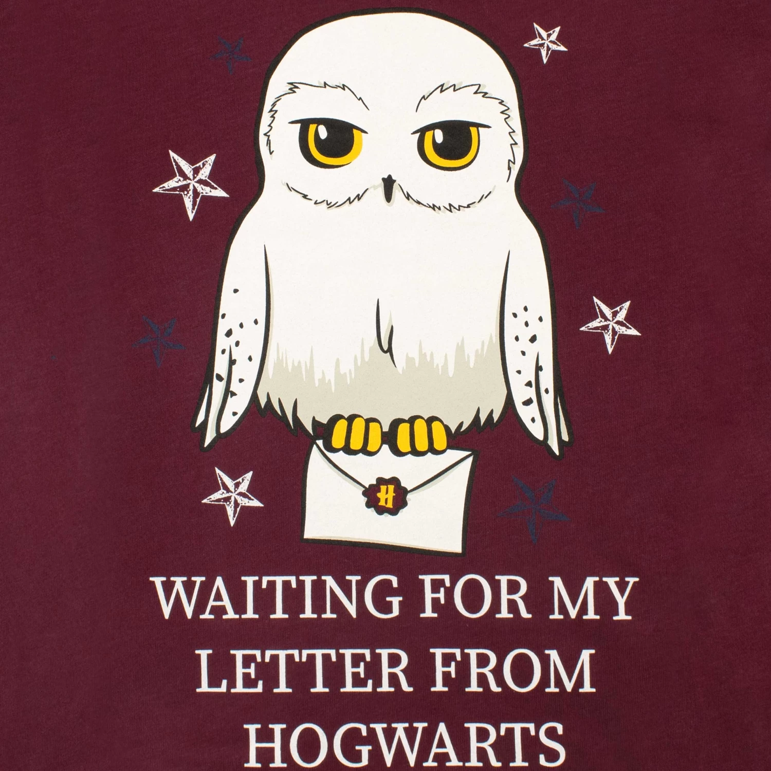 Make every bedtime magical with these awesome Harry Potter PJs! This enchanting set features Hedwig on a burgundy short sleeve t-shirt, with a print on the top that reads ‘Waiting for my letter from Hogwarts’. Paired with matching blue bottoms which have the iconic Harry Potter logo on the leg. Elasticated waist and cuffs give these bottoms extra style and comfort. Hedwig will guarantee your little wizard the most enchanting night sleep in these Hogwarts pyjama set.