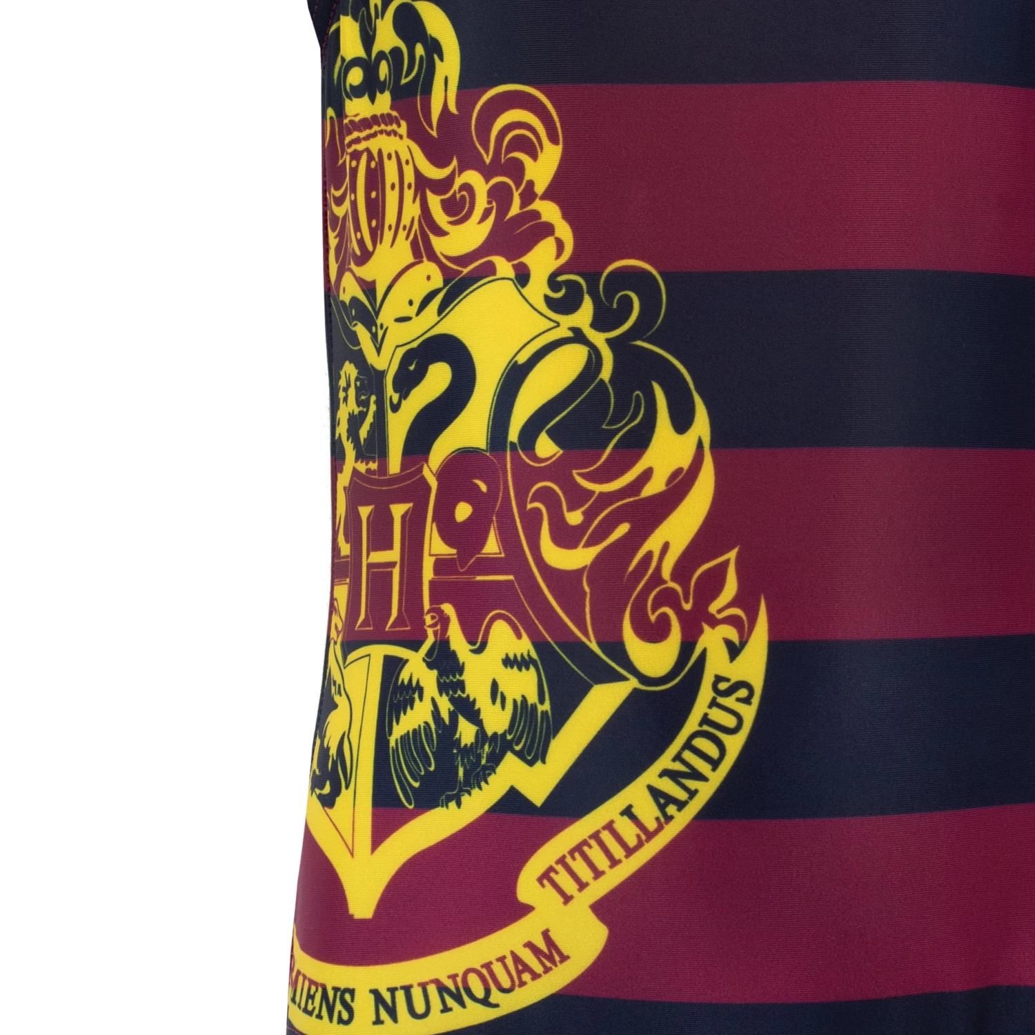 Take the magic of Hogwarts wherever you go with this amazing Harry Potter swimming costume! This enchanting bather comes with burgundy and navy stripes, the name Hogwarts on the chest and the iconic Hogwarts coat of arms to one side. Perfect for witches and muggles alike, this Harry Potter bathing suit is one you should Accio now before it vanishes.