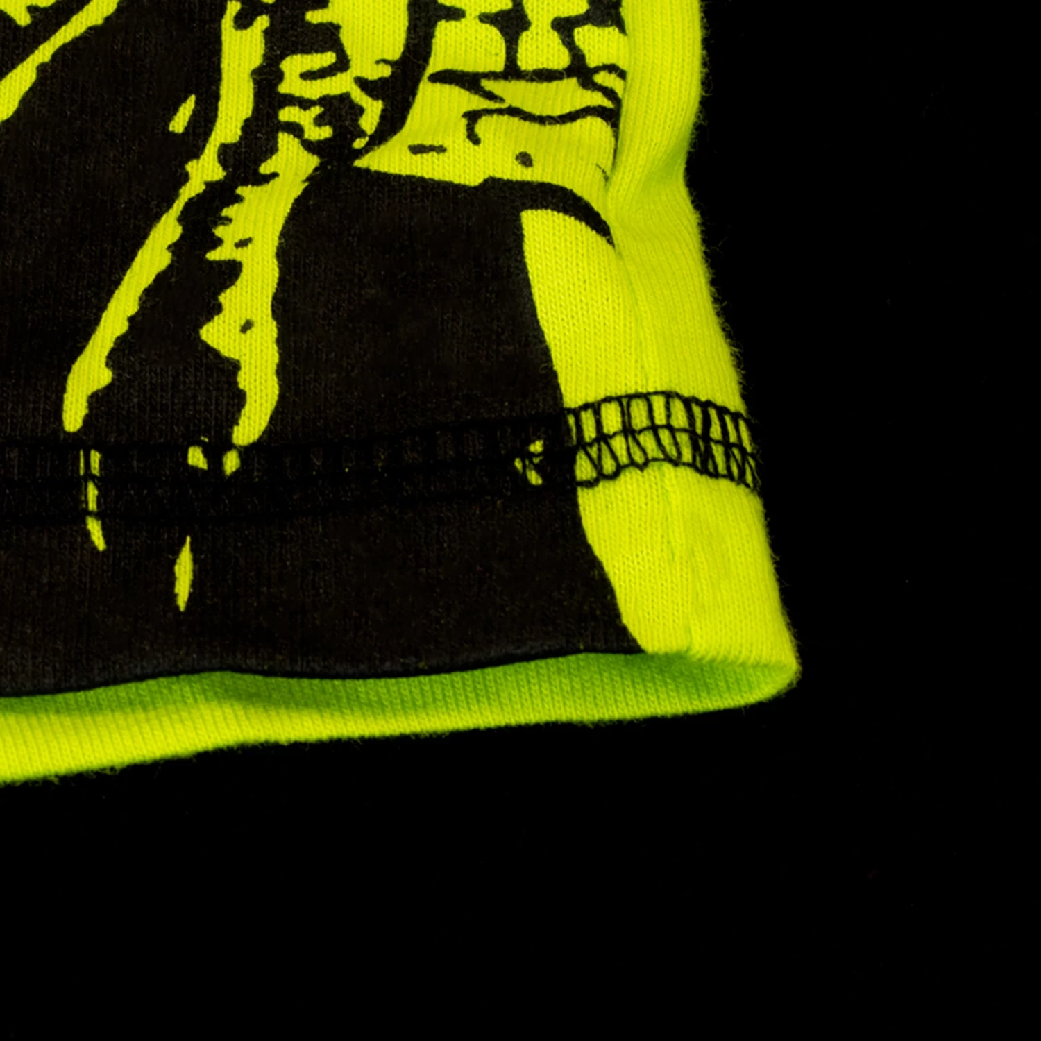 Get your little Dino lover ready for adventure in this Jurassic World T-Shirt and Shorts set. The vibrant green top features a T-Rex along with the words “MISSING T-REX”. The Jurassic World logo is printed in contrasting black on the right sleeve. The black shorts showcase taping along the sides with the words “Jurassic World” in vivid bright green. The Shorts also feature a drawstring for extra comfort.