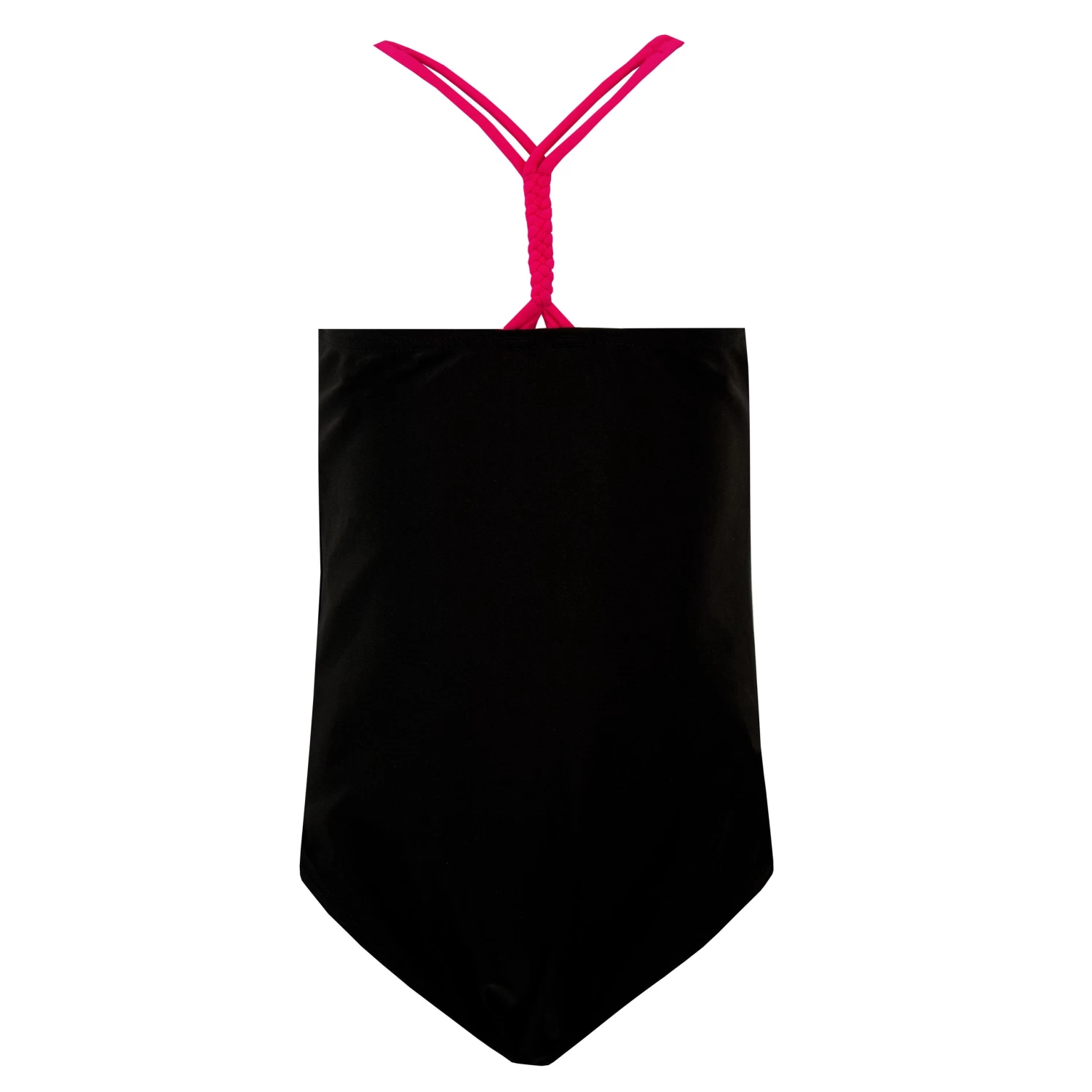 Little Barbie girls will definitely feel like they’re in a Barbie world in this stunning bather! This black Barbie swimming costume has the iconic Barbie logo in a shimmery bright pink foil complete with matching pink straps. Your little doll will be the most fashionable around the pool this summer!