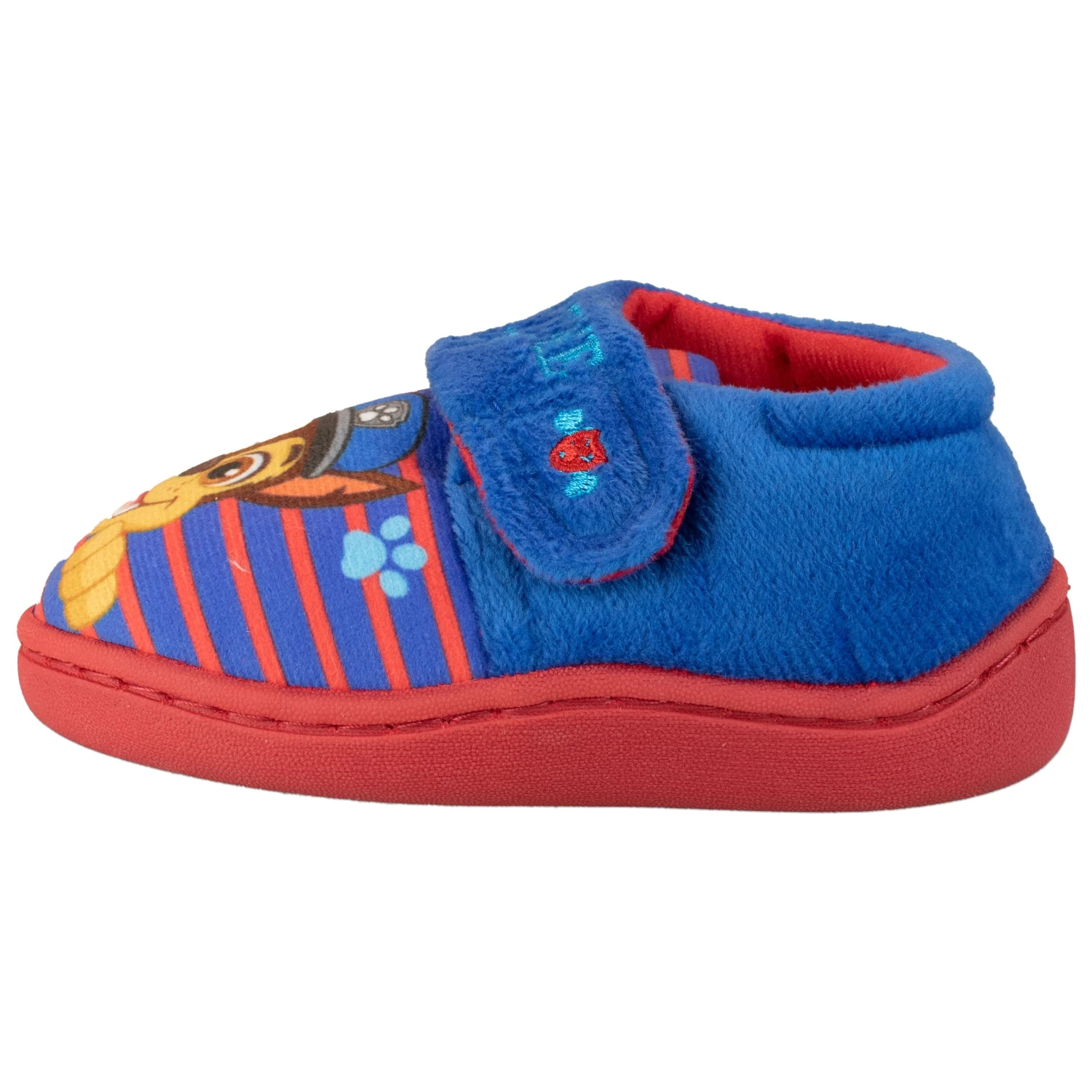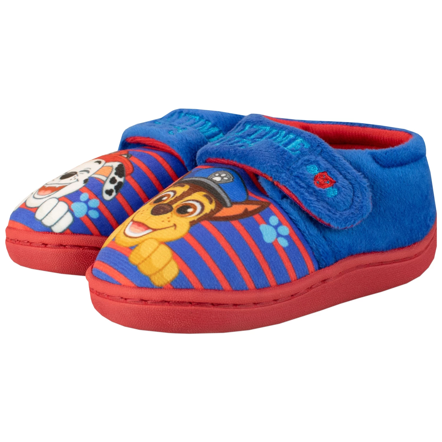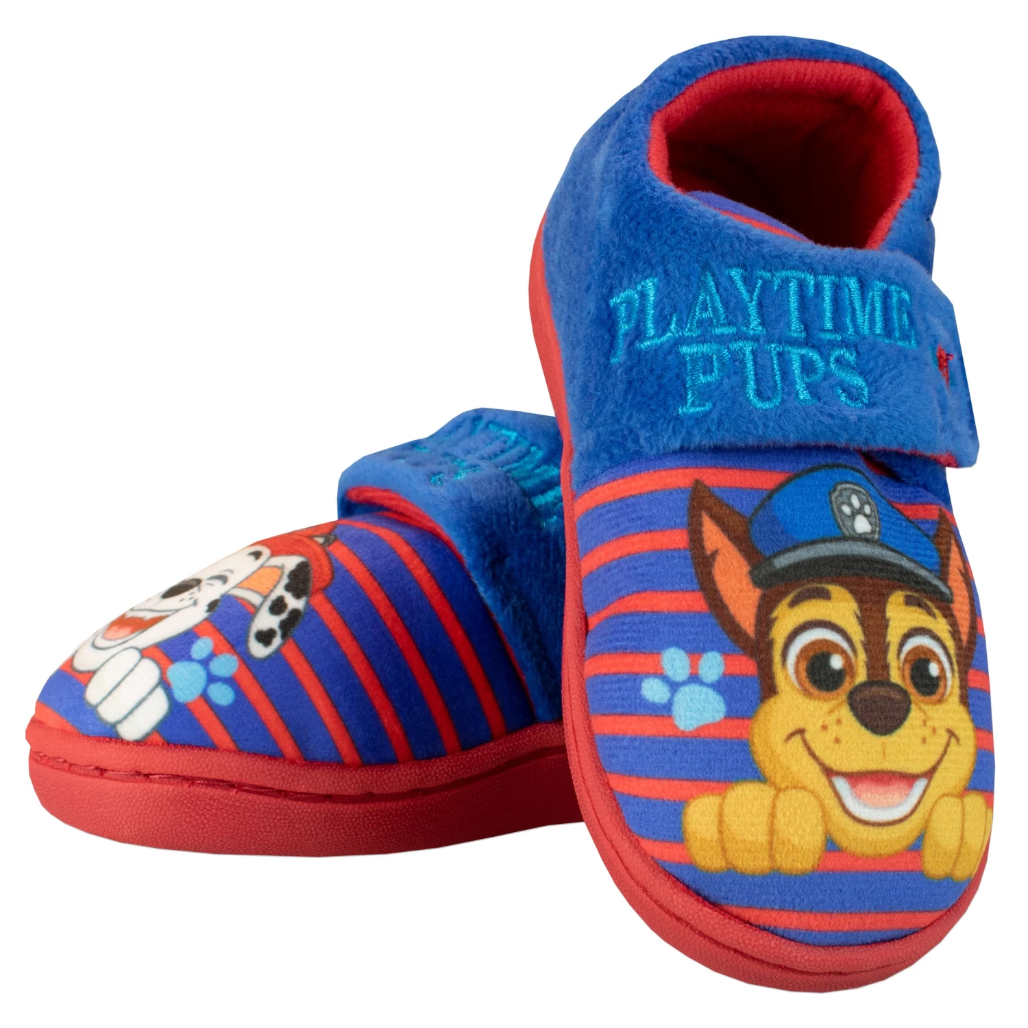 Heroes at the ready! Roll into action in these awesome blue and red Paw Patrol slippers! Featuring Chase with ‘Playtime Pups’ written above. Complete with rubberised soles for added grip and velcro fasteners. Perfect for paw-rific Paw Patrol fans on the move!