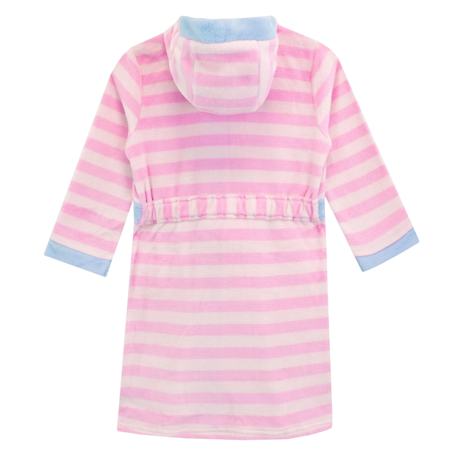 Unwind after a day of jumping in puddles in this cosy Peppa Pig Dressing Gown & Pyjama Set. Featuring a pink stripe robe with blue tie and binding. Pair with matching Pyjama top ‘Bedtime story with Peppa and Suzy’ and pink and blue star bottoms to finish off the look ready for bed time. This night time set is perfect for any Peppa Pig fans!