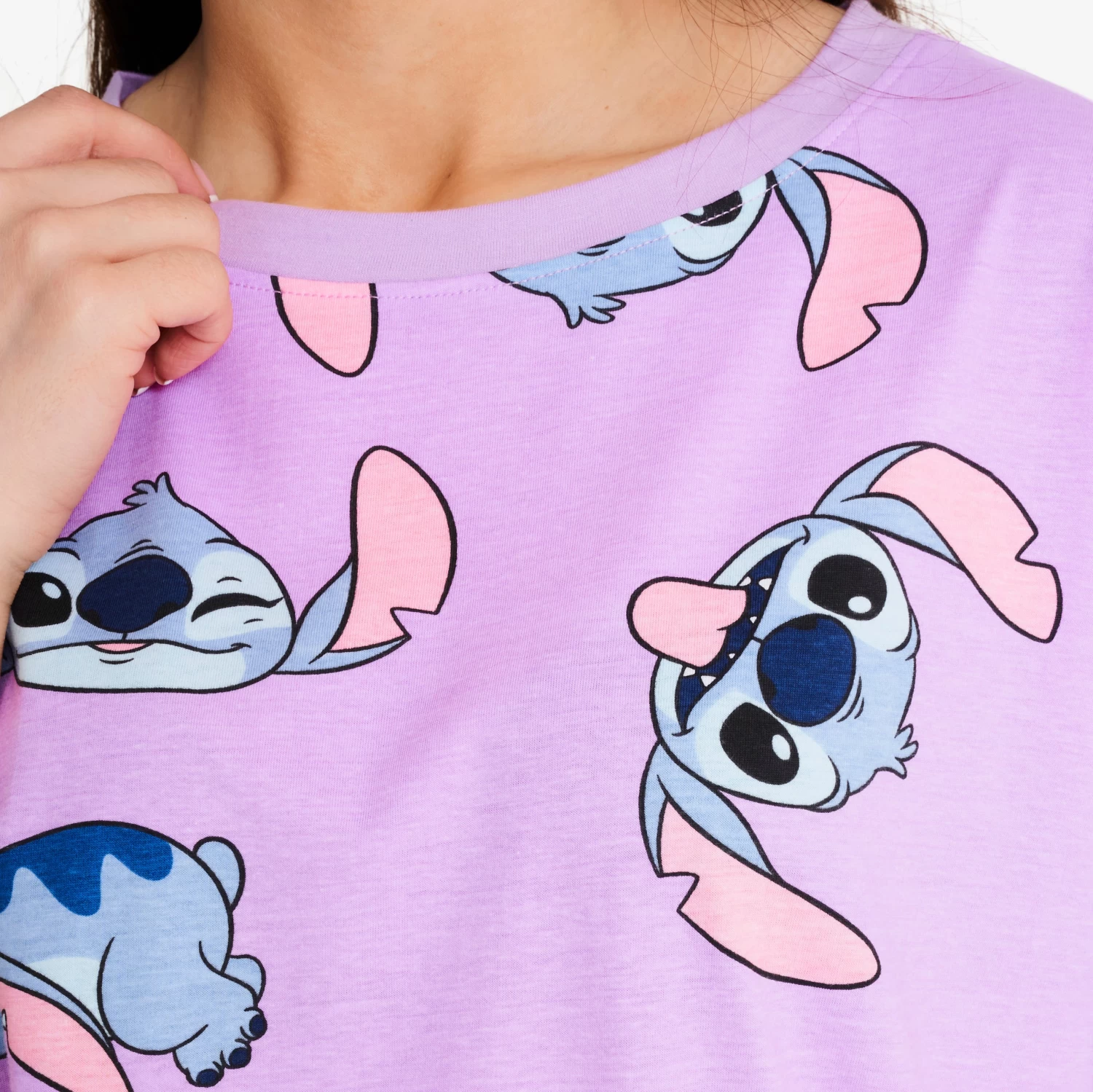 - Step into the whimsical world of Lilo and Stitch with our delightful Stitch PJs! Experience enchanting dreams as you rock this lilac tee and matching shorts adorned with an all-over print of Stitch!