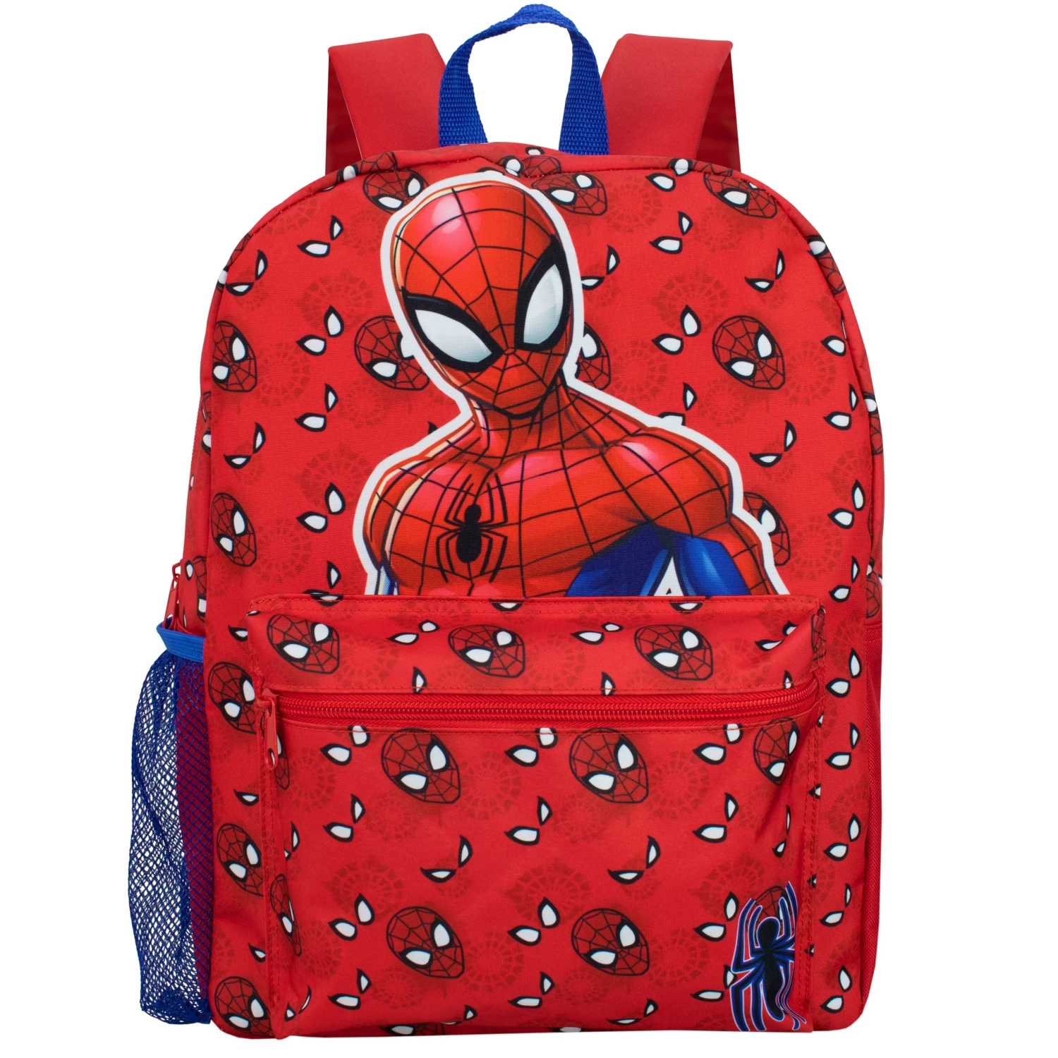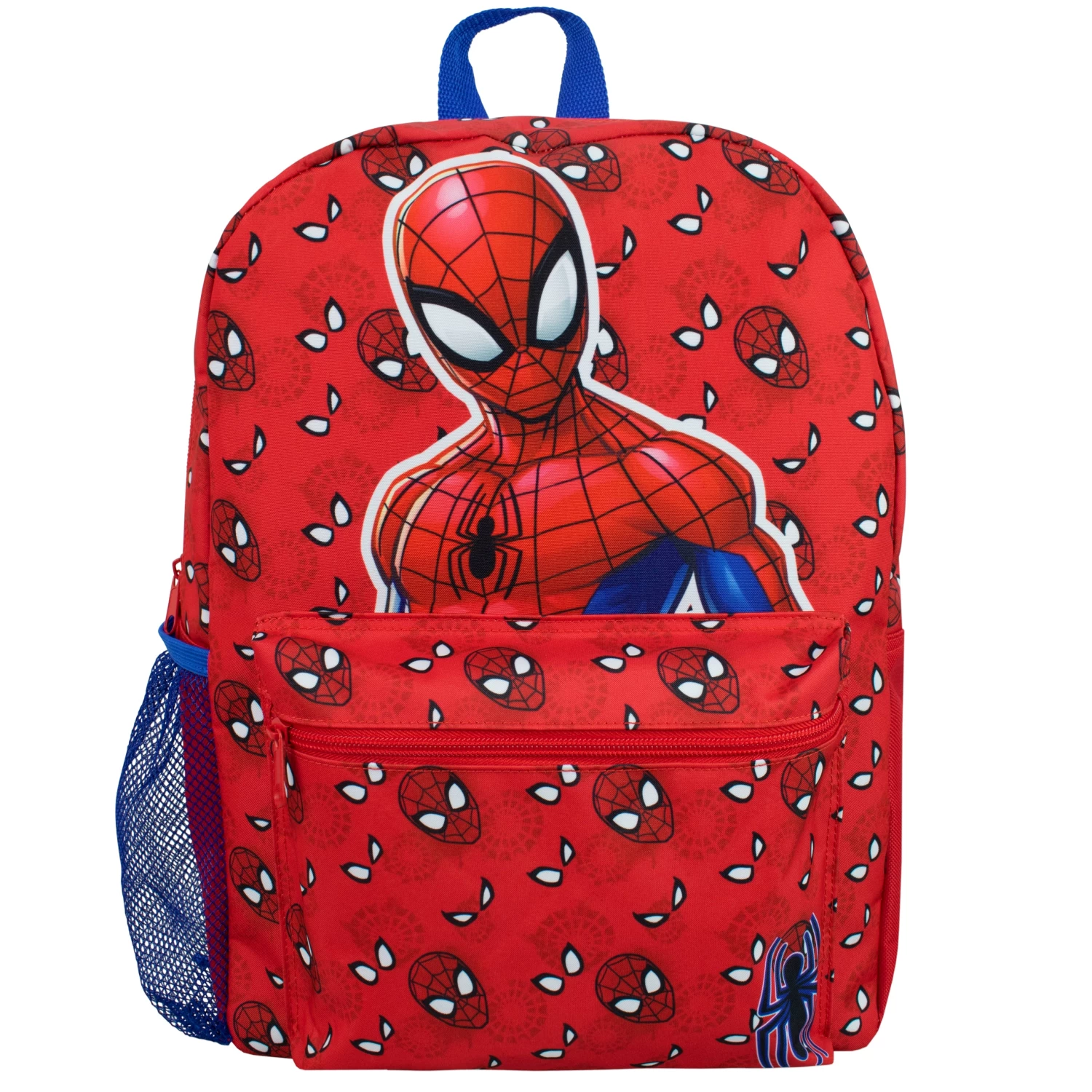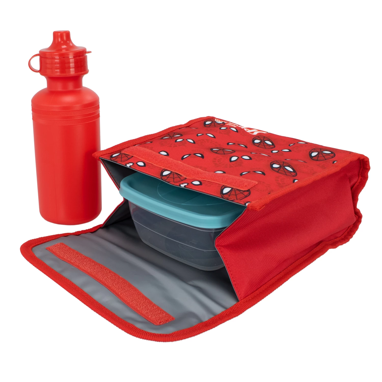 - Versatility meets style with this comprehensive set, including a backpack with a large front pocket and side mesh pocket, a lunch bag adorned with a Marvel Spider-Man logo, and a matching pencil case, plus a vibrant red water bottle – your all-in-one solution for school essentials!