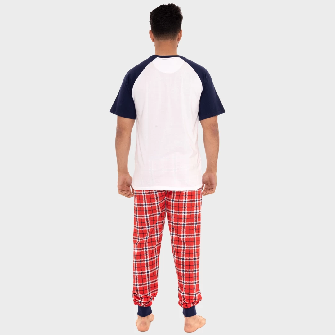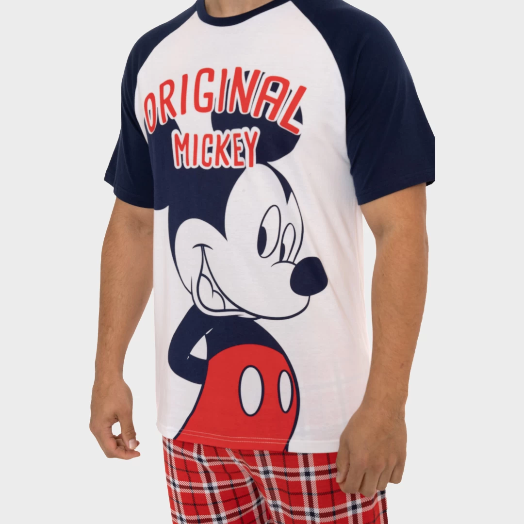 Celebrate the original Disney mascot with these classic family collection Mickey Mouse PJs! The white pyjama top has contrasting navy short sleeves showcases a cool print of Mickey Mouse overlaid by the slogan ‘Original Mickey’ in red font. Paired with red plaid pj bottoms with a comfy elasticated waistband and navy ankle cuffs. The best nightwear for comfy nights in watching your favourite Disney films!