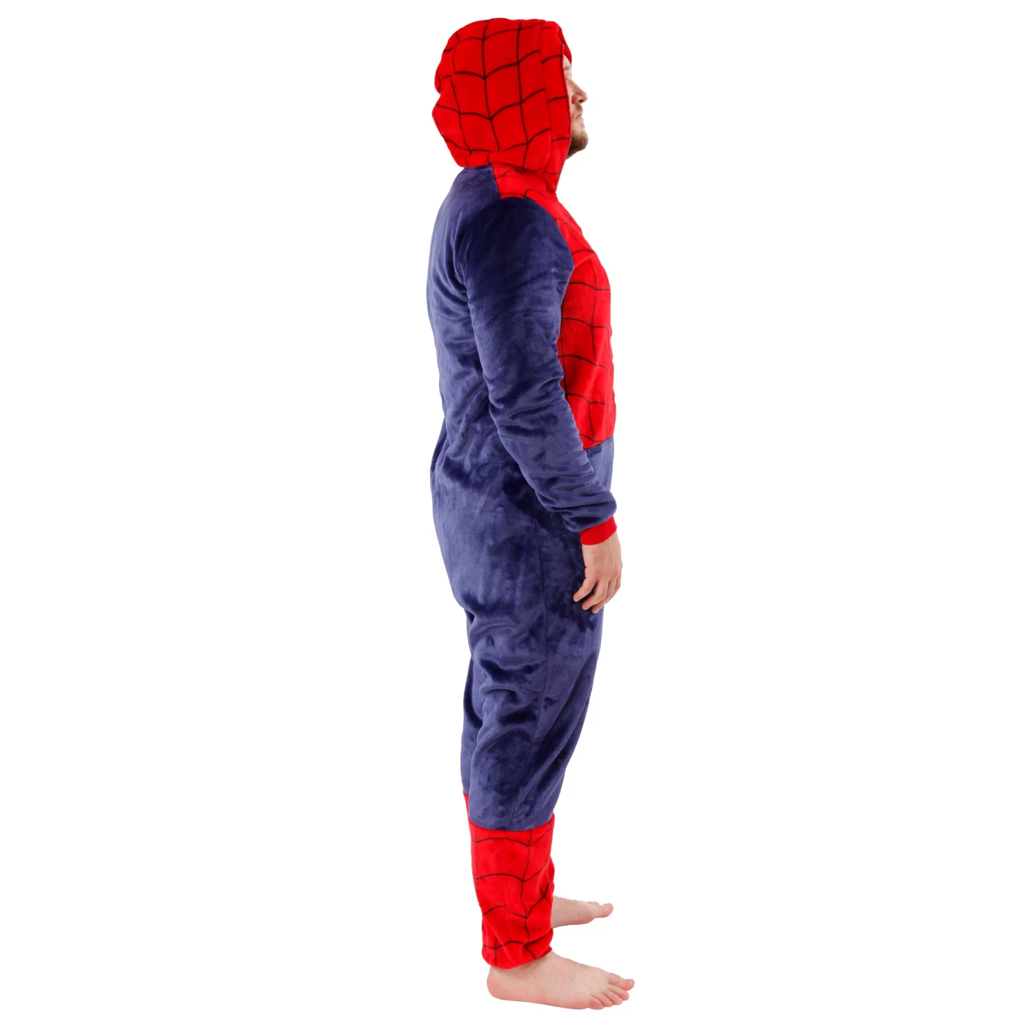 Channel your inner wall-crawler while staying toasty! This men’s Spider-Man onesie blends the iconic red and blue design with the plush comfort of fleece, ensuring you’re the most stylish fan on the couch. Plus, the red hood with a spiderweb design is perfect for selfies or just wrapping up during a superhero movie marathon. Go ahead, embrace your inner Peter Parker… without the sticky situation!