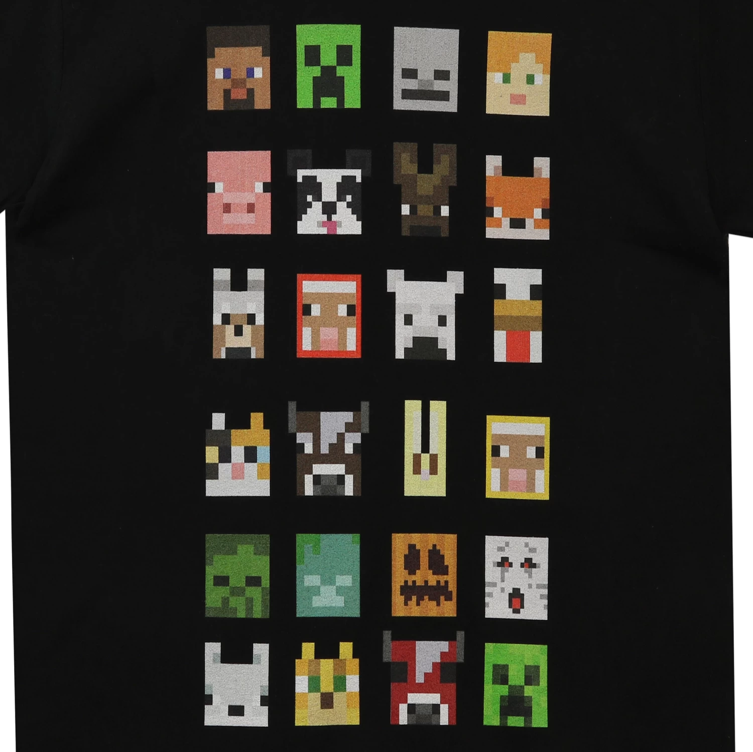 This classic t-shirt has short sleeves with a round neck, featuring a bold grid print of all their favourite Minecraft characters including Steve and the green creeper. Made from soft and comfortable cotton, this tee will be a firm favourite in their wardrobe! Ideal for fans of the popular game, this awesome Minecraft top comes in a black or blue background.