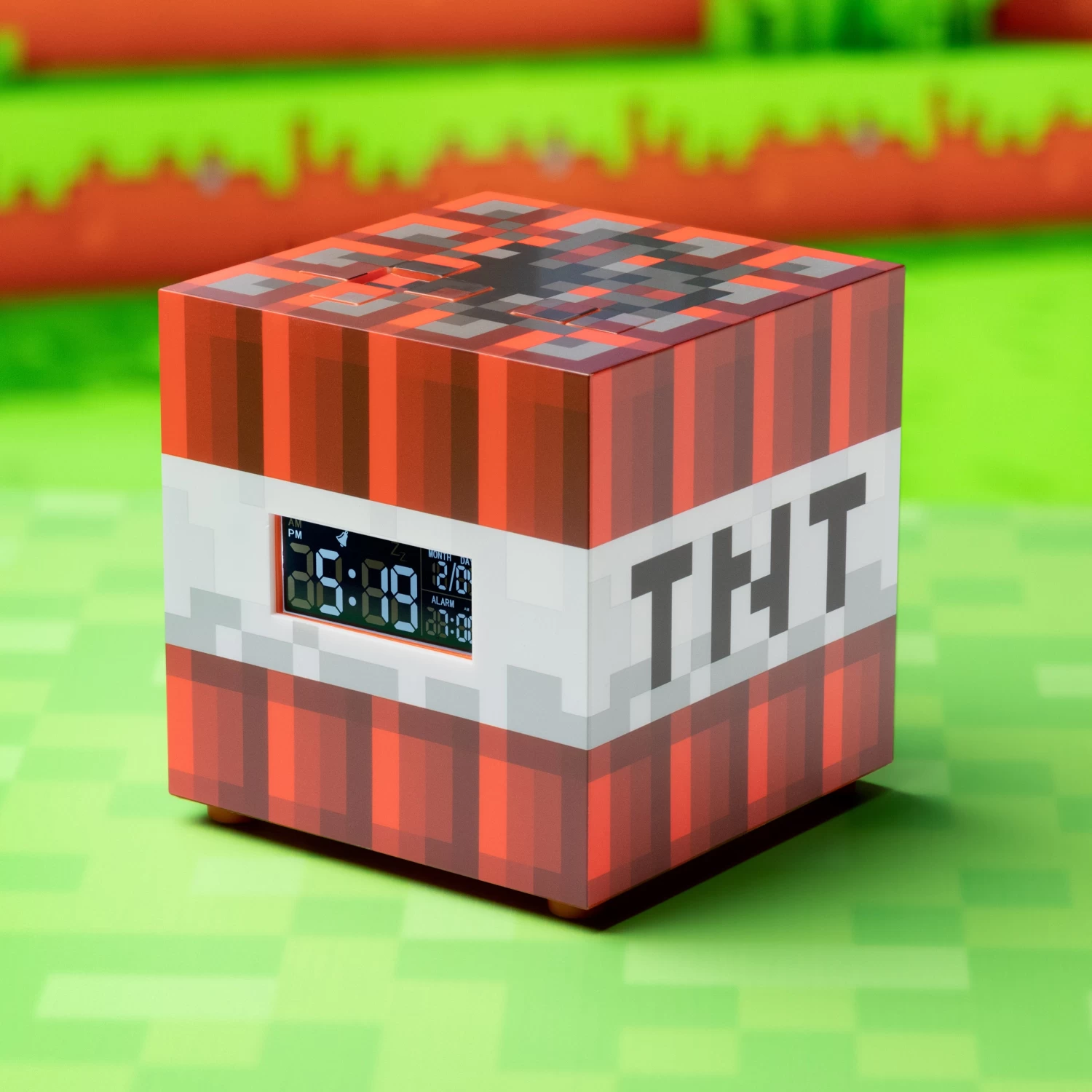 Designed with details that stay true to the famously pixelated video game, this Minecraft TNT Alarm Clock is powered by USB (cable included) and also has a mood light function to create the perfect ambience in your bedroom, gaming den, or man cave.