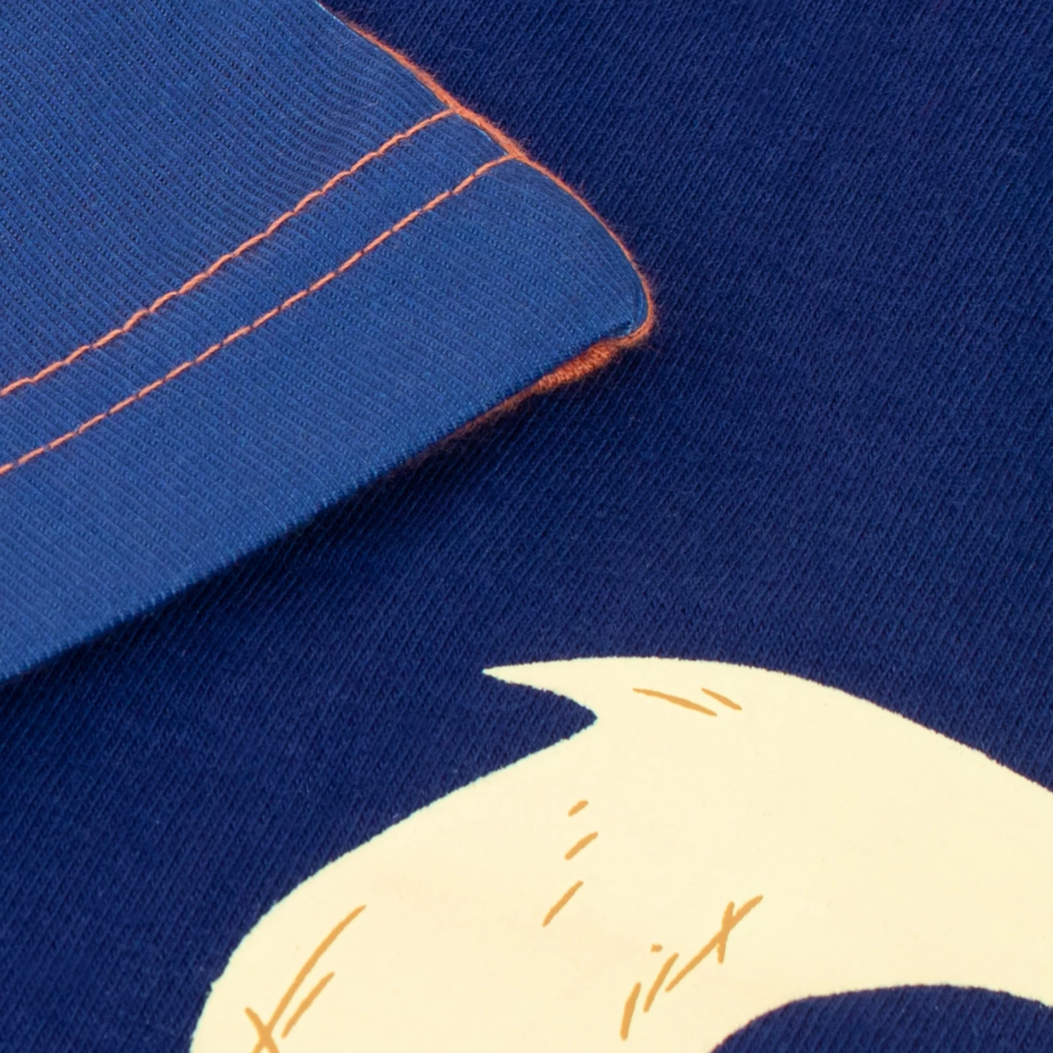 Send your ocean explorer sailing through dreamland with these fun Moana PJs! This red and navy blue short sleeve pyjama top features the slogan ‘Follow the Stars’ against a full body print of Moana and Maui sailing under the stars. Paired with navy pj bottoms showcasing Maui and his hook on the left ankle, with a comfy elastic waistband and cuffed ankles. They’ll have the most magical aquatic dreams with Moana and friends with this fun Disney sleepwear!