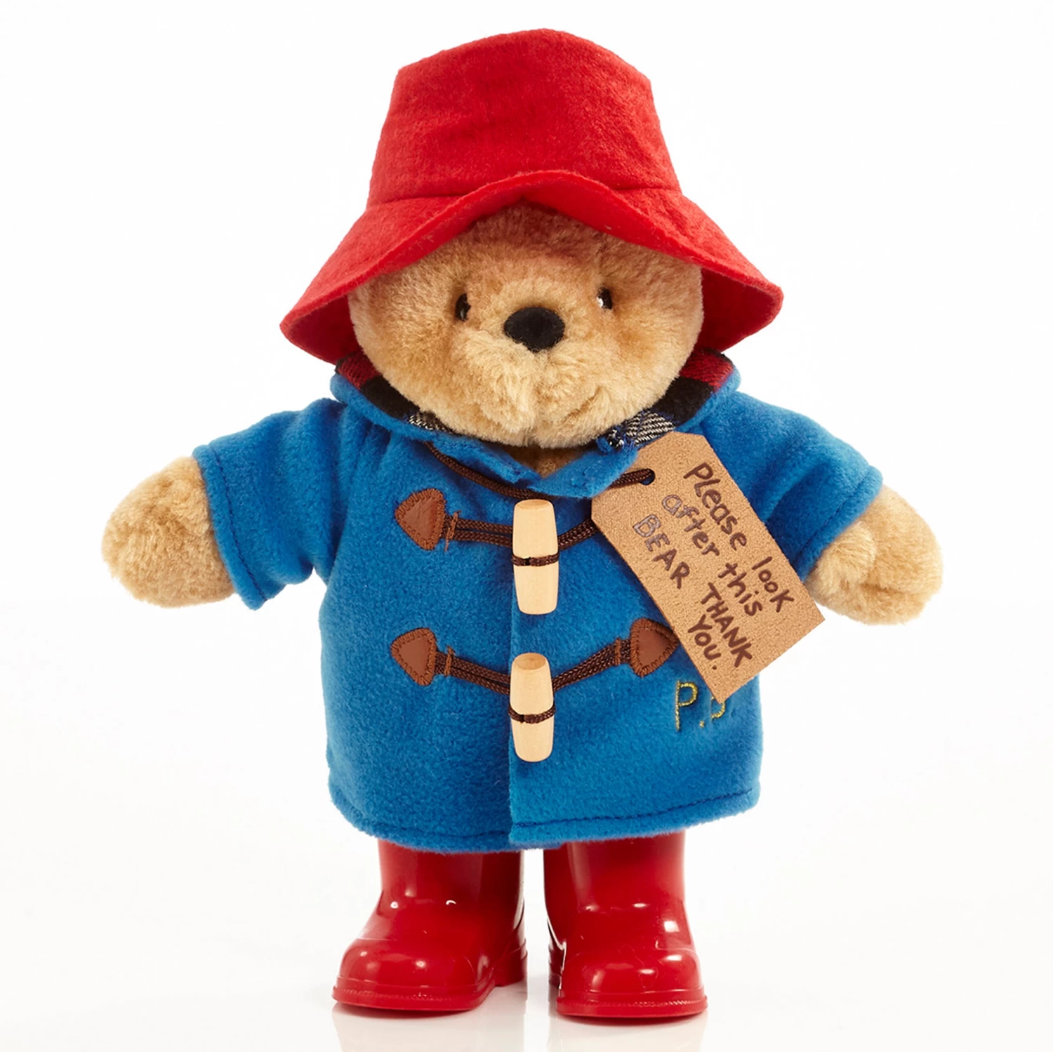 Would you like to take care of this bear? The Classic Paddington with Boots is an irresistible gift for both collectors of Paddington Bear and young fans. As a standing 25cm plush character, the Classic Paddington with Boots is an iconic addition to any Paddington Bear collection and is the perfect playroom pal to accompany story time for children aged 10 months and over. This striking soft and cuddly character toy features the distinctive and famous Paddington Bear accessories including a super soft lined duffle coat with real toggles, a battered red felt bush hat and ‘real’ shiny red wellington boots. The exceptional attention to detail also includes gold embroidered ‘P.B’ on Paddington’s duffle coat and a suedette ‘Please look after this bear. Thank you’ tag around his neck.