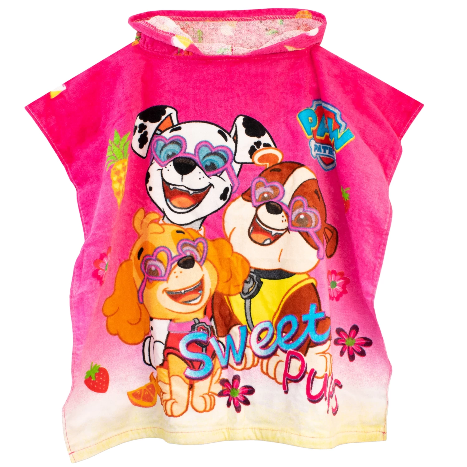 Pups to the rescue! After wet and wild adventures at the pool or beach, wrap up your pup in this bright pink and yellow hooded towel featuring furry favourites Skye, Marshall, and Rubble! With ‘Sweet Pups’, fruit, and flowers surrounding the trio, this cosy cotton towel is perfect for drying off soggy pups! The towel is completed by a bold fruit motif on the back of the towel, perfect for summer heroics in Adventure Bay