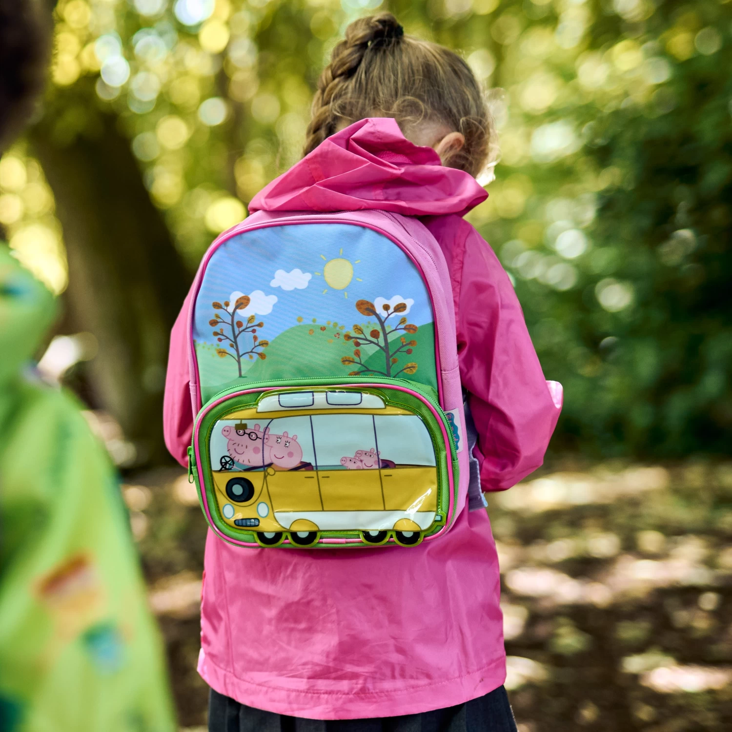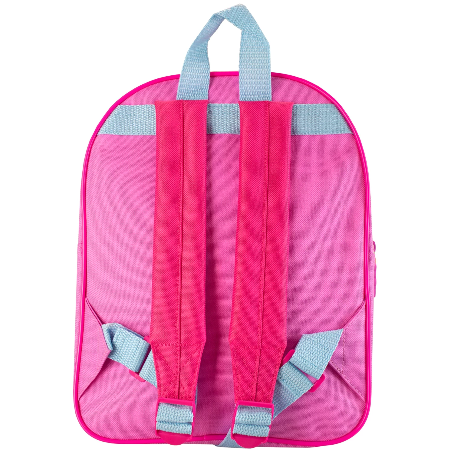 The Pig family are going out for an adventure, and now your little piglet can join them with this adorable Peppa Pig backpack! This pink and blue bag will carry everything your Peppa fan needs for a fun day out or a great a day at school. Against a backdrop of hills, trees and sunshine, this rucksack has an oversized front pocket in the shape of a campervan, showcasing Peppa and her family going on a trip, and even includes a cute rubber zip pull in the shape of Teddy. Wherever the day takes them, little piglets are sure to have an oink-tastic time with this colourful Peppa Pig backpack!