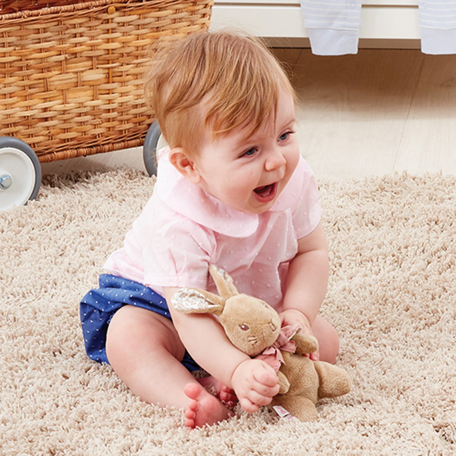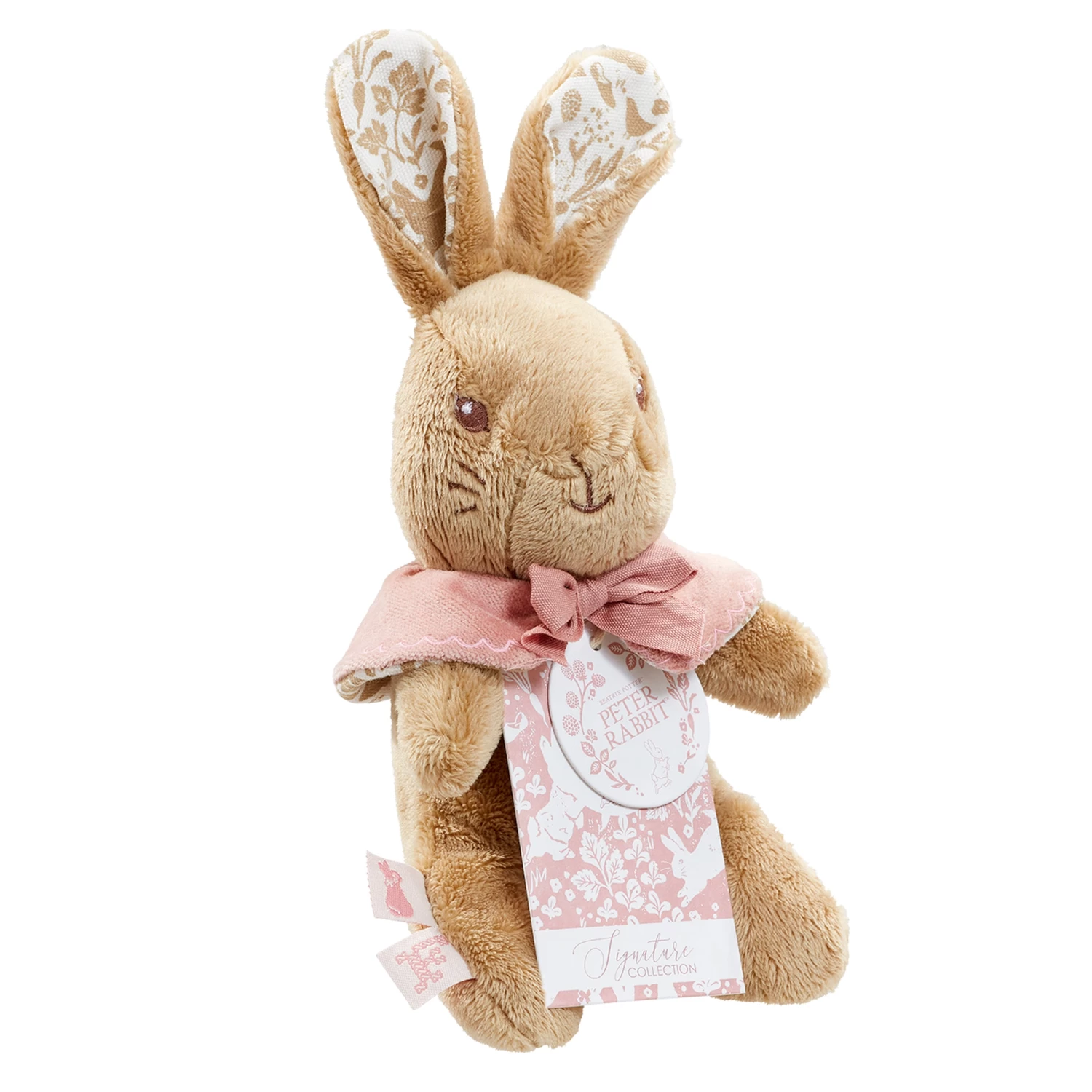 The beautiful Signature Flopsy Bunny Small Soft Toy is from the Peter Rabbit Signature Collection, a range of ‘Forever’ heirloom toys created to be shared across generations. The characters from the Tales of Beatrix Potter children’s storybooks are some of the most traditional and much-loved and evoke nostalgia in gift buyers who want to share happy memories and traditional values of their own childhood. Created from the softest plush and styled in the most beautiful premium quality fabrics and patterns, this exquisite Flopsy Bunny soft toy offers both contemporary yet traditional styling that will appeal to all generations of gift buyer. The perfect size for little ones to love, the Signature Flopsy Bunny Small Soft Toy makes the perfect best friend for playtime, naptime and cuddle time!