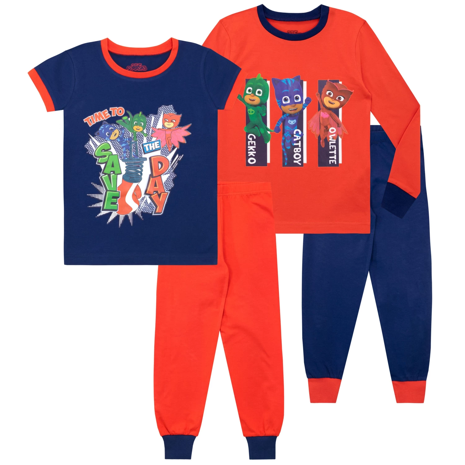 Its time to be a hero! In red and blue, this 2 pack of pyjamas features exciting prints of moonlight crusaders Catboy, Owlette, and Gekko on a blue short sleeve and red long sleeve top. Paired with red and blue bottoms that can be worn with either tee, your little hero will be ready to fight the Night Ninja in these awesome jammies! Crafted to be snug-fitting for extra comfort, for a little extra room, we recommend ordering a size up!