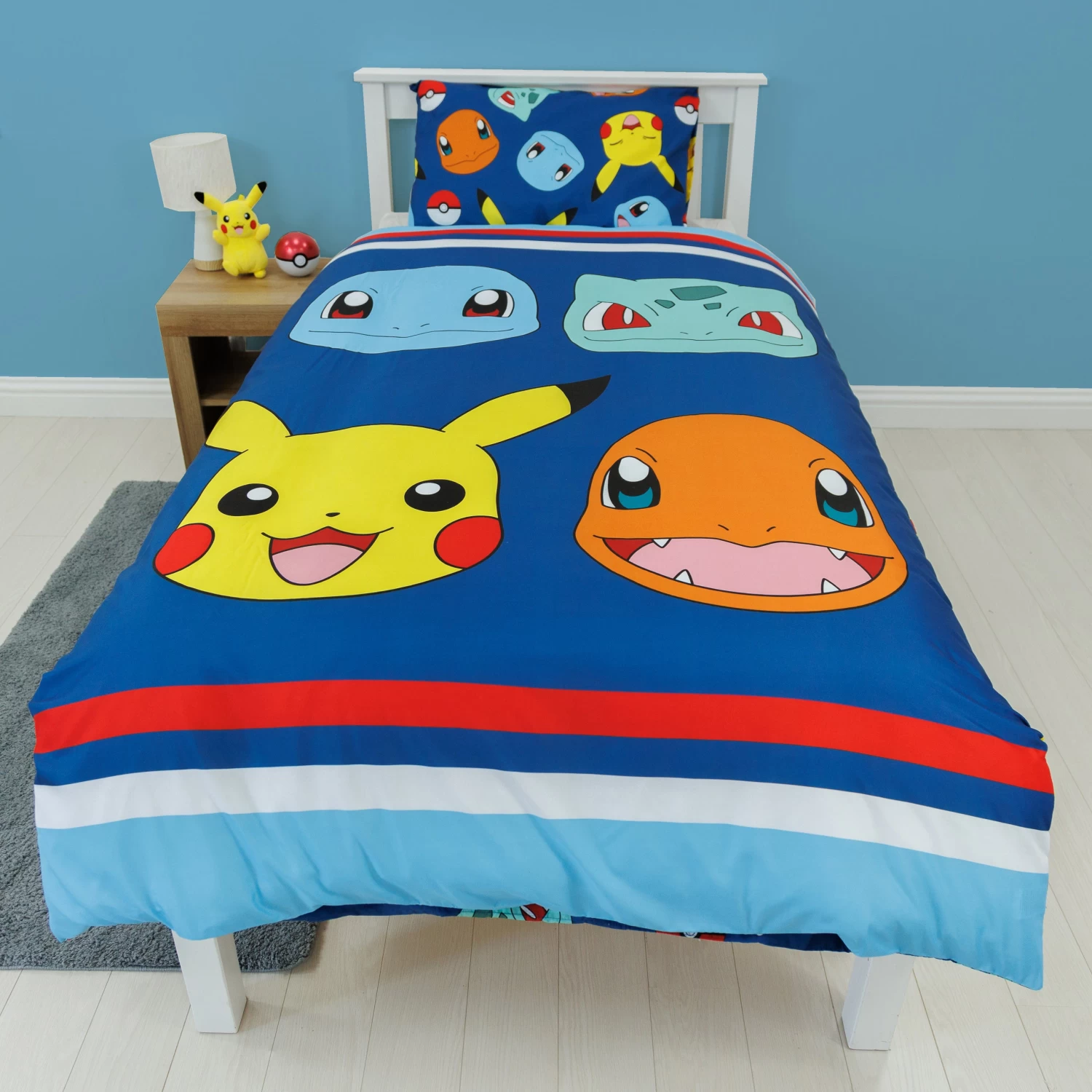 - Transform bedtime into a fun journey with our Pokémon Single Bedding Set, featuring Pikachu, Squirtle, Bulbasaur, and Charmander – a delightful duvet cover for every aspiring Pokémon trainer.