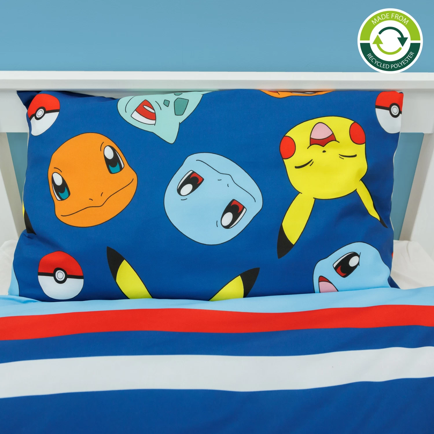 - This vibrant quilt cover, splashed with red, white, and light blue stripes, flips over to reveal a repeating pattern of your favourite Pokemon along with Poke balls, bringing a piece of the Pokémon world to your child’s room.