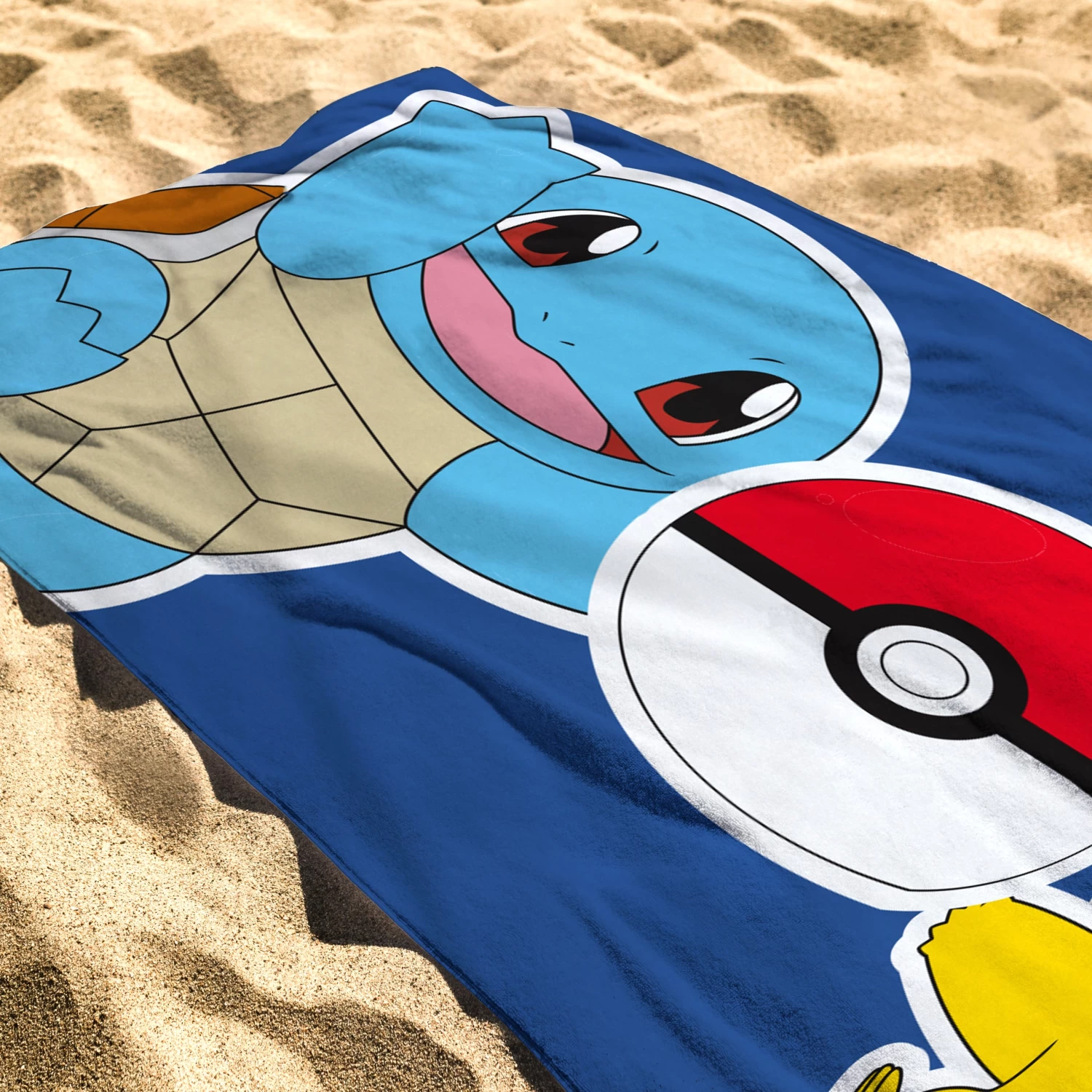 After a fun day splashing about your little one can dry off with this fun Pokémon towel. Featuring Pikachu, Squirtle and a Poke ball over a dark blue background. This adorable Pokémon towel is perfect for a day at the beach, the pool or just the bath!