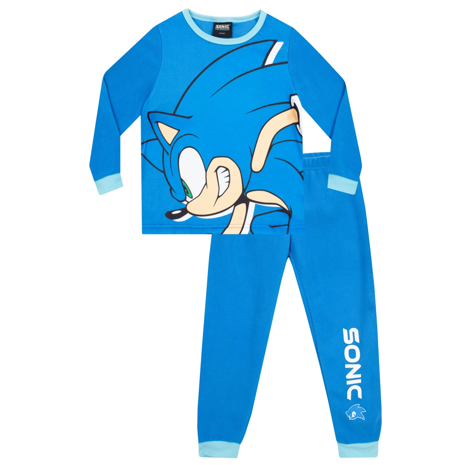 - Zoom into dreamland with our cosy Sonic The Hedgehog kids’ pyjamas and slippers set, featuring a super-soft fleece PJ top and Sonic-printed bottoms!