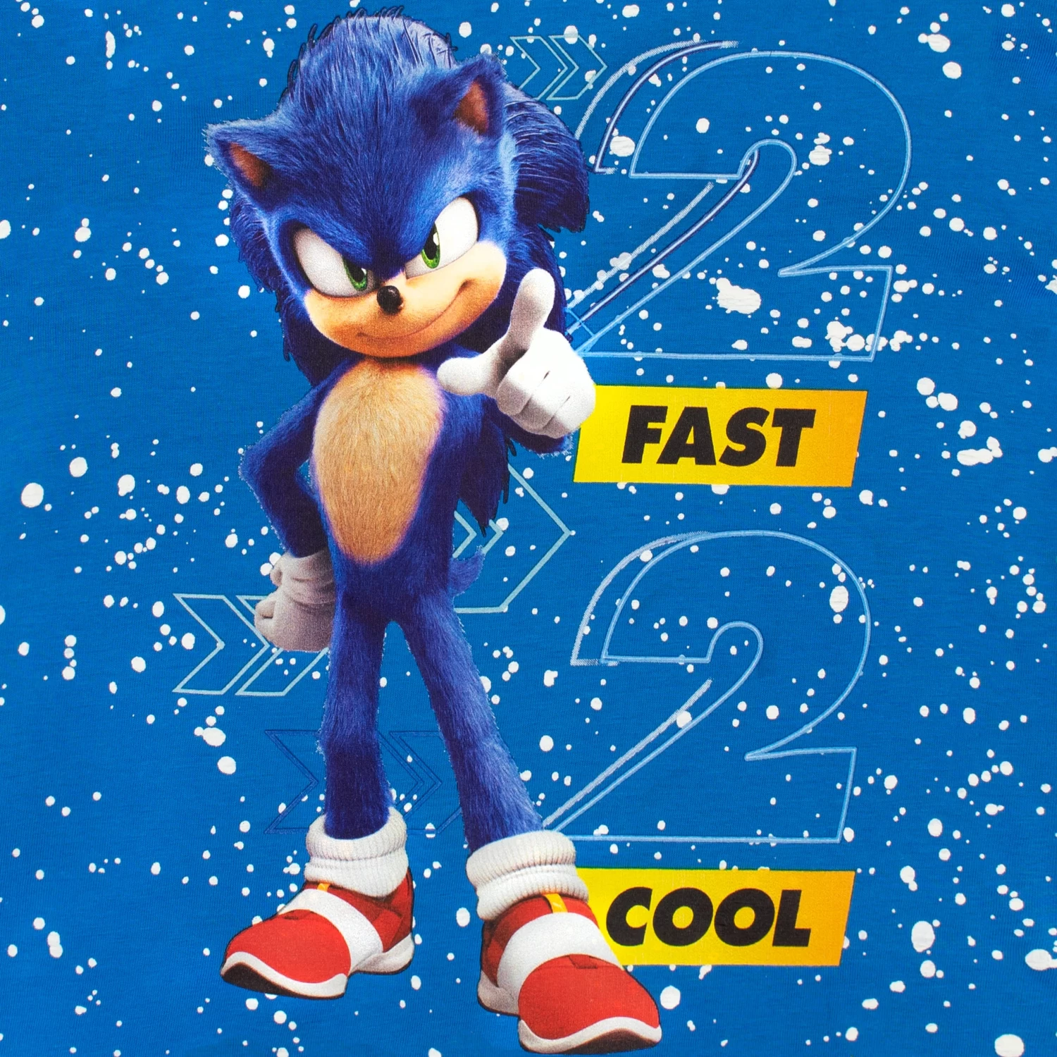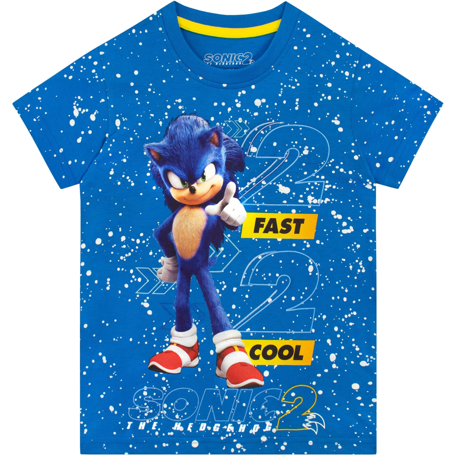 Speed around in this awesome Sonic T-Shirt. This top features the well known Sonic The Hedgehog from the classic SEGA video game. On a blue fabric this tee has a ‘2 fast 2 cool’ slogan above the iconic ‘Sonic 2’ wording. Complete with an all over speckle paint splat print. Your little one will be running away from Dr Eggman at his supersonic speed! A must have tshirt for any fan of Sonic The Hedgehog. For a more casual look dress with jeans and trainers.