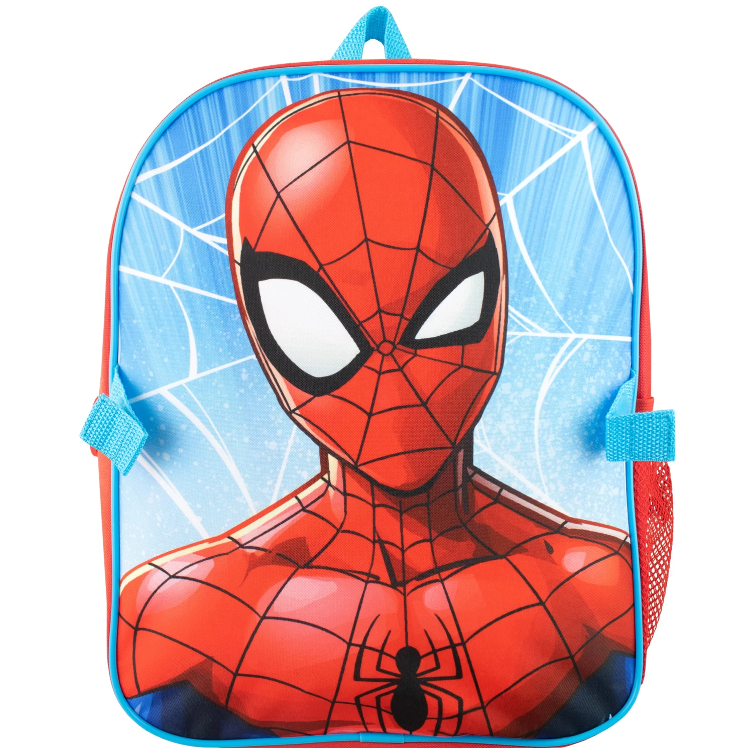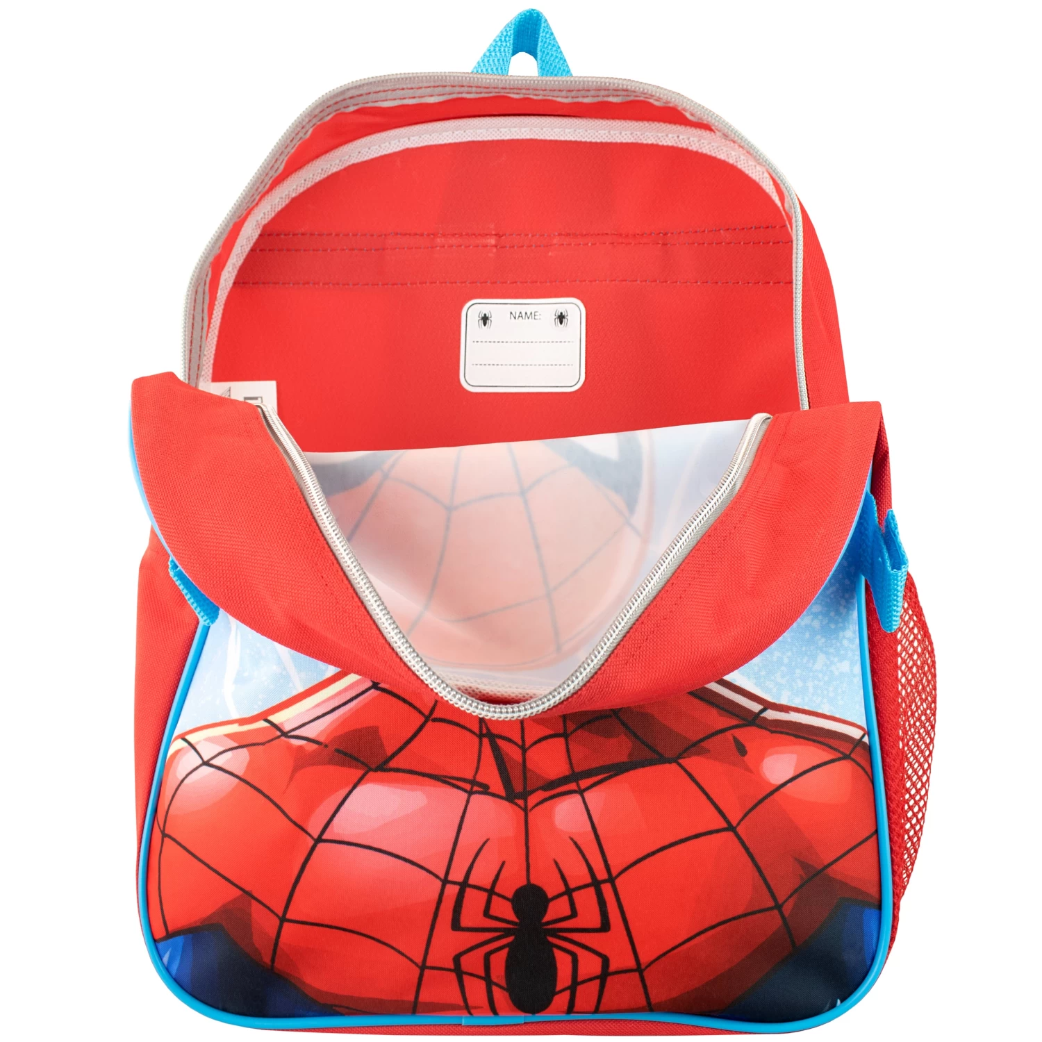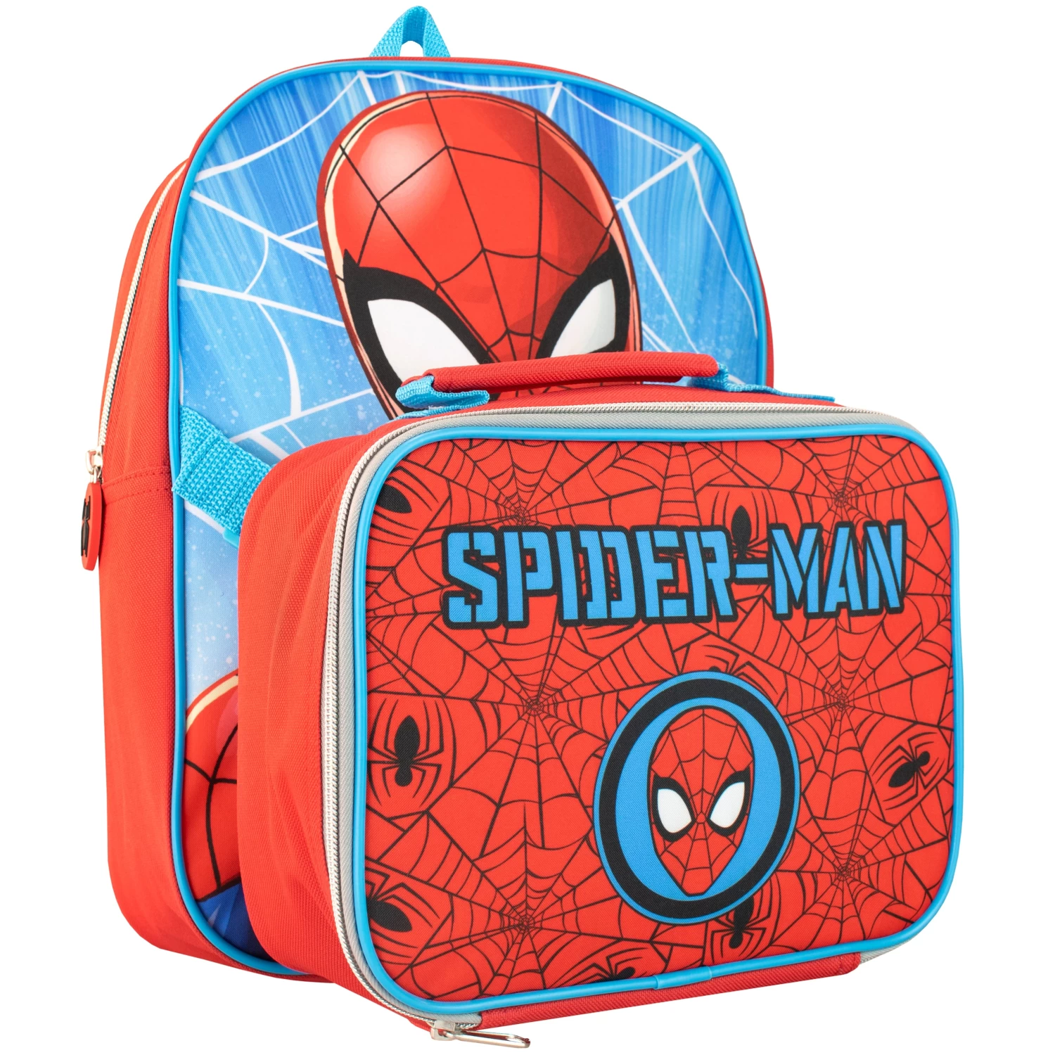 Watch your superhero swing into their next action-packed mission with this marvel-ous Spider-Man backpack and lunchbag set! This red and blue bag showcases a large print of Spider Man on the front with a mesh side pocket, rubber spider zip pull and printed interior name label. The matching lunch bag features a spiderweb pattern and a print of Spiderman’s mask beneath the bold slogan ‘Spider-Man’, and includes an elastic strap to keep the contents securely in place. The best bag to take to school and on special missions, with space to carry a superhero outfit to protect your little hero’s secret identity!