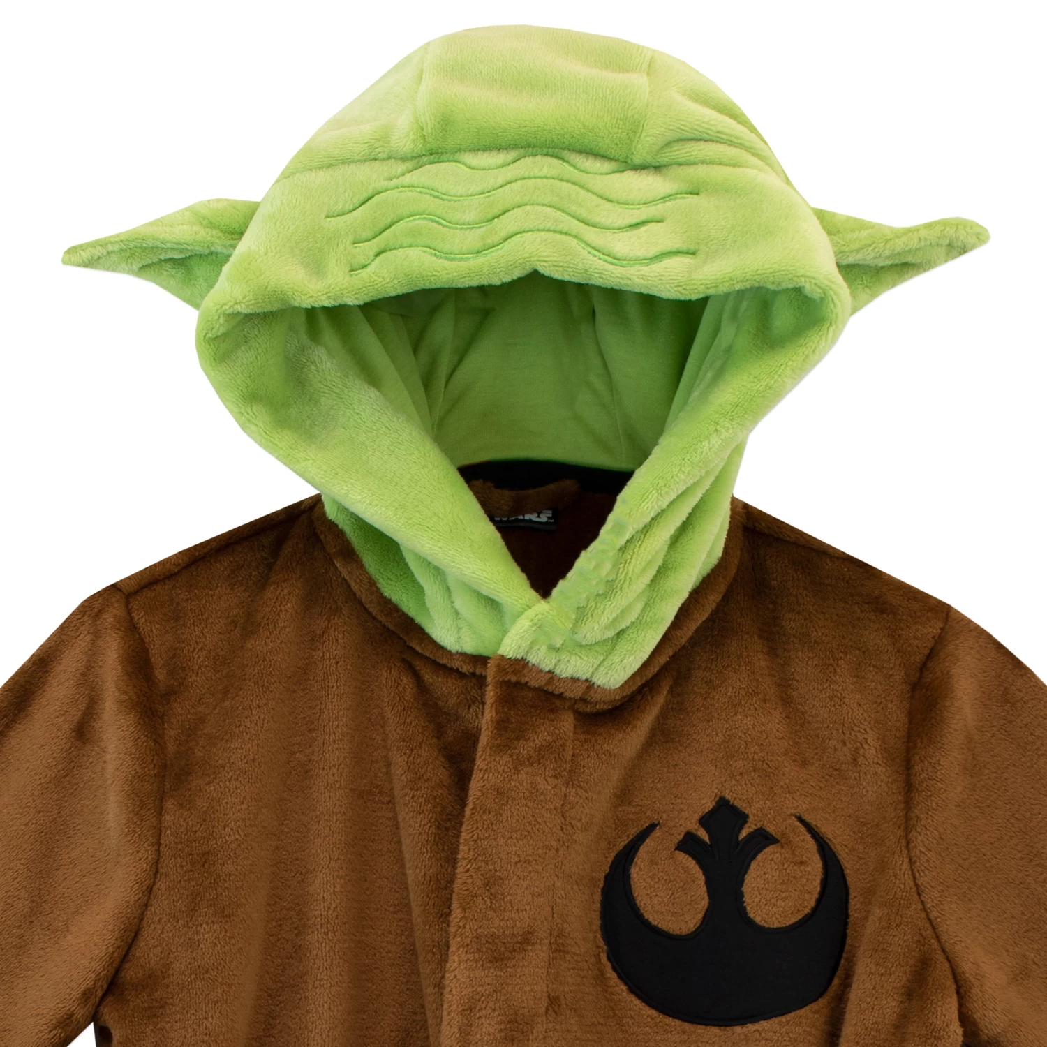 Inspired by the famous Jedi, this super soft bath robe in brown is reminiscent of Master Jedi: Yoda, and features his ears in 3D green on the hood! Complete with a tie-belt fastener and two handy waist pockets. Featuring embroidered badges of the Rebel Alliance and Star Wars logo, this bath robe is sure to be a favourite with Star Wars fanatics!