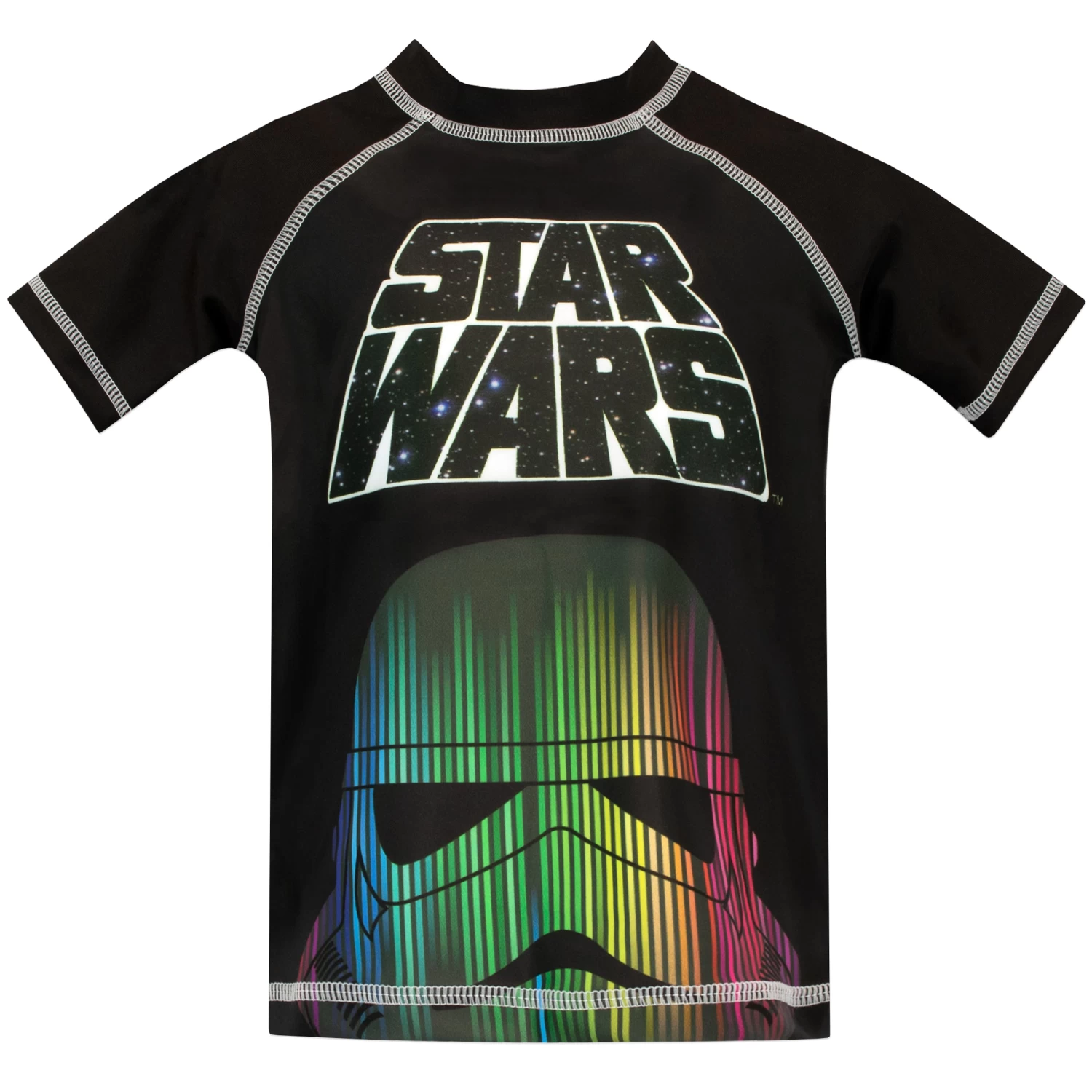 Embrace your inner Jedi with our cool Kids Star Wars swim set! Dive into your aquatic adventures wearing the iconic stormtrooper helmet in a rainbow of colours, and the bold Star Wars logo against a cosmic black base. Our swimwear ensures comfort with its elasticated waistband, turning you into the most stylish star trooper in the pool. Join the intergalactic fun and stand out like a star in the galaxy of swimwear!