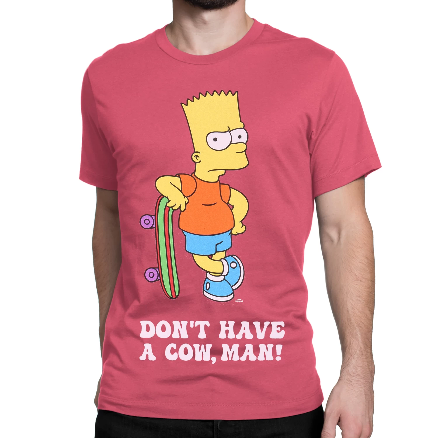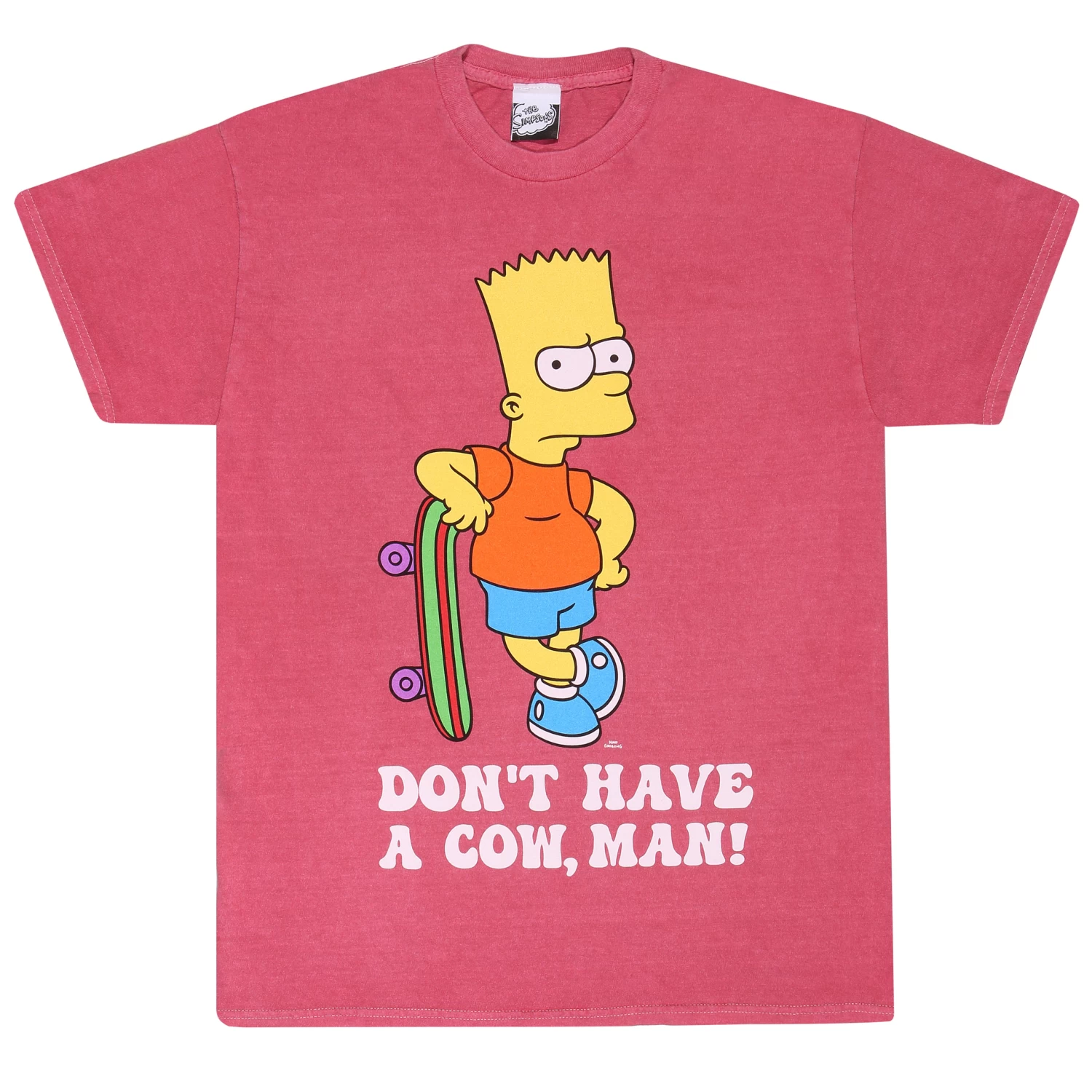 Slide into Springfield with this vibrant red tshirt! Made with 100% soft cotton, our Bart Simpson T-shirt is perfect for those who want to channel their inner mischief-maker. Rock Bart’s iconic look with him leaning on his skateboard and let everyone know to ‘Don’t have a cow, man!’ Add a touch of 90s nostalgia to your wardrobe today!