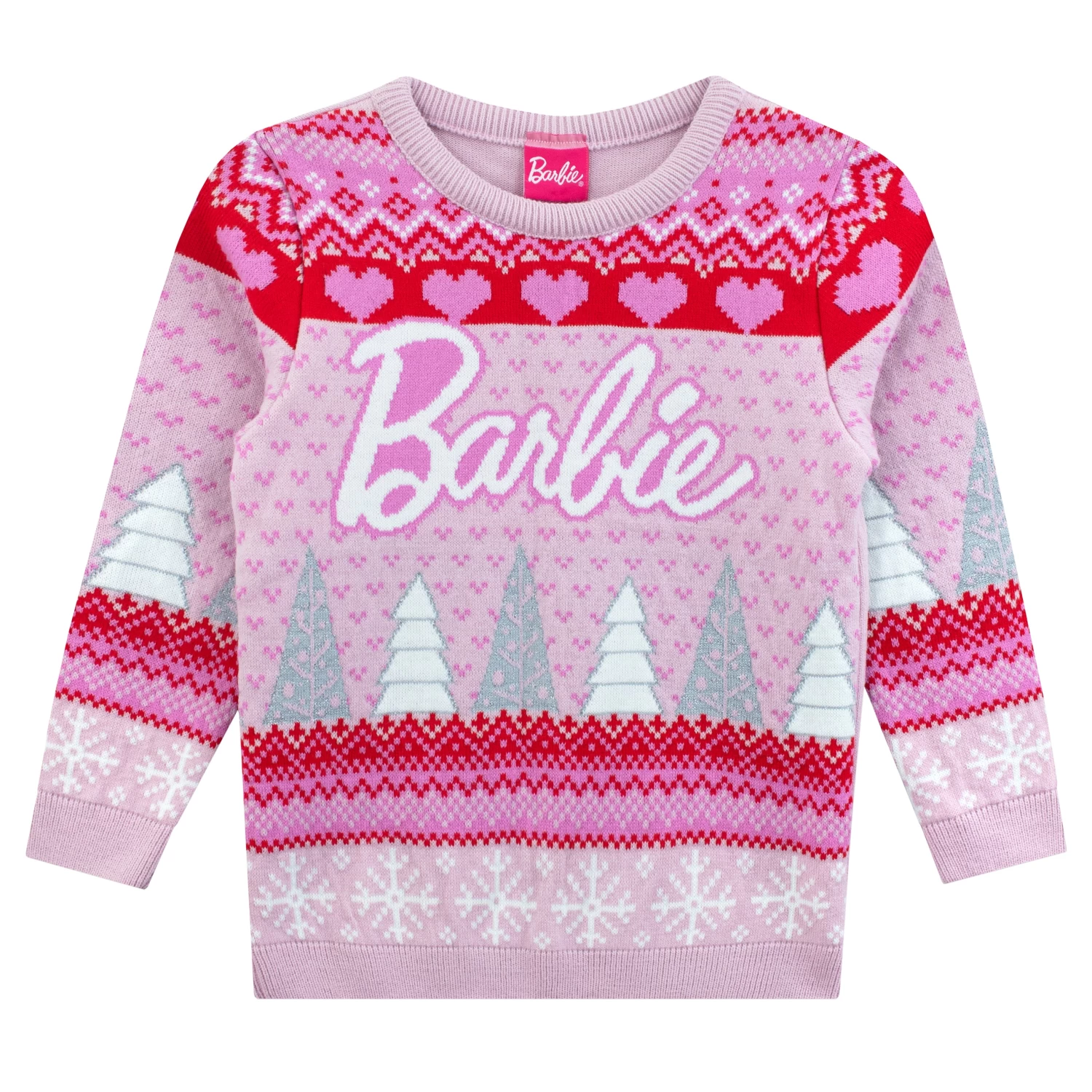 Dive into the festive season with a sprinkle of Barbie magic! This playful Christmas jumper boasts a pink, red, and white pattern, shimmering glitter trees, and the iconic Barbie logo. Cosy up with its warm long sleeves made from 100% acrylic. Official Barbie gear for the ultimate winter wonderland fun!