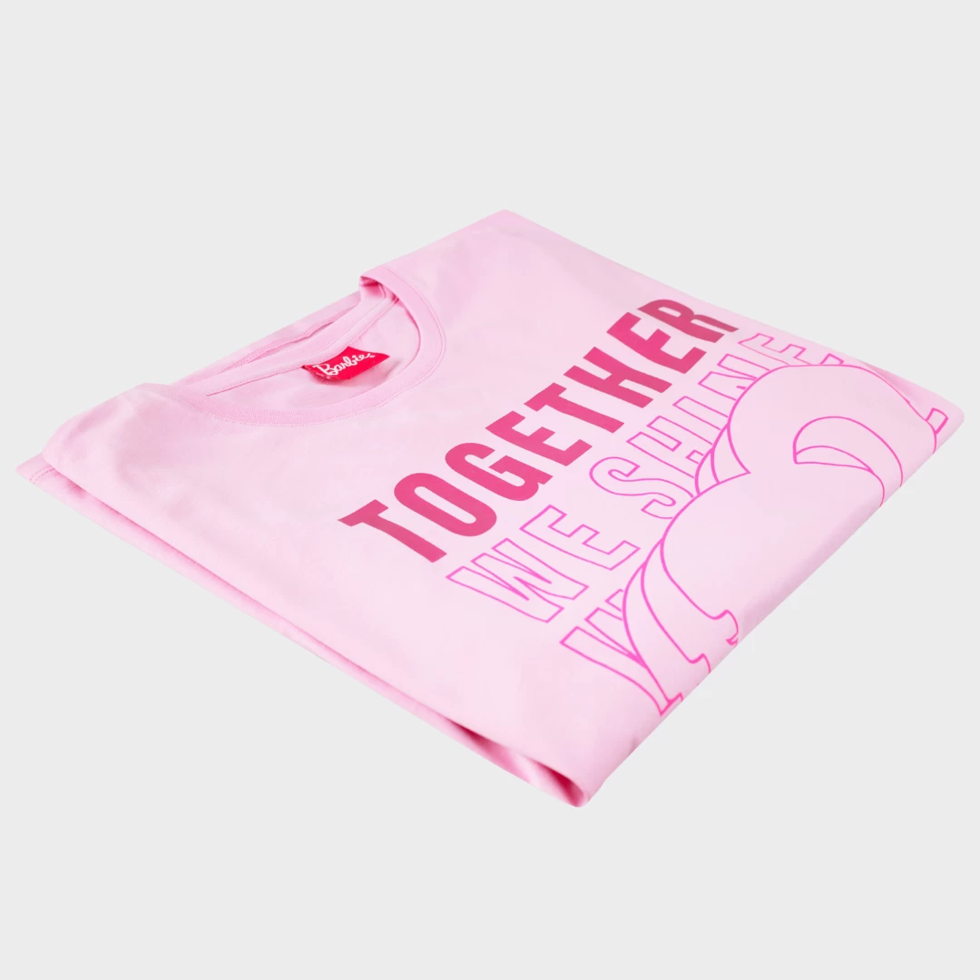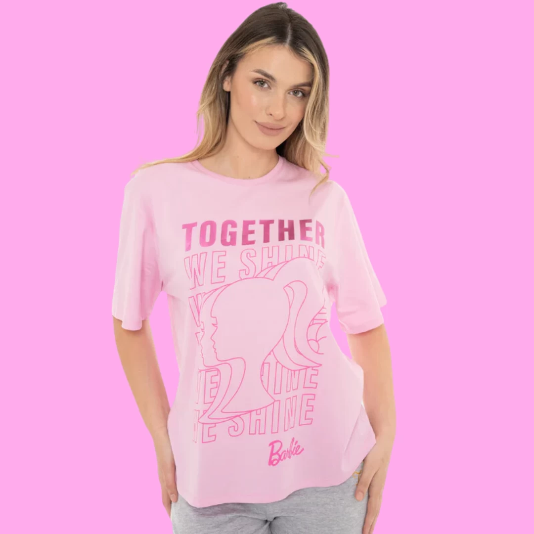- Celebrate unity with the ‘Together We Shine’ Barbie tee, featuring three stunning overlapping silhouettes and shimmering pink script.