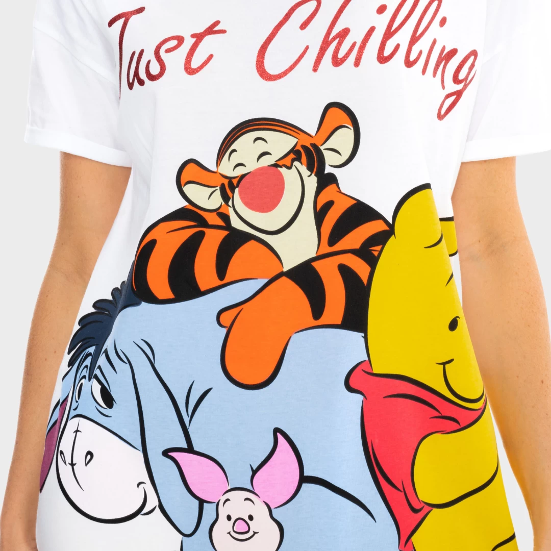 Tut tut, it looks like rain! You’d better put on these cute Winnie the Pooh jammies and settle down to watch your favourite Disney film instead. The white pyjama top showcases Pooh, Tigger, Piglet and Eeyore with the phrase ‘Just Chilling’ in pink lettering. Paired with yellow dolkadot pj bottoms, you’ll look sweeter than honey! The perfect jammies for any Disney fan feeling nostalgic for everyone’s favourite silly old bear!